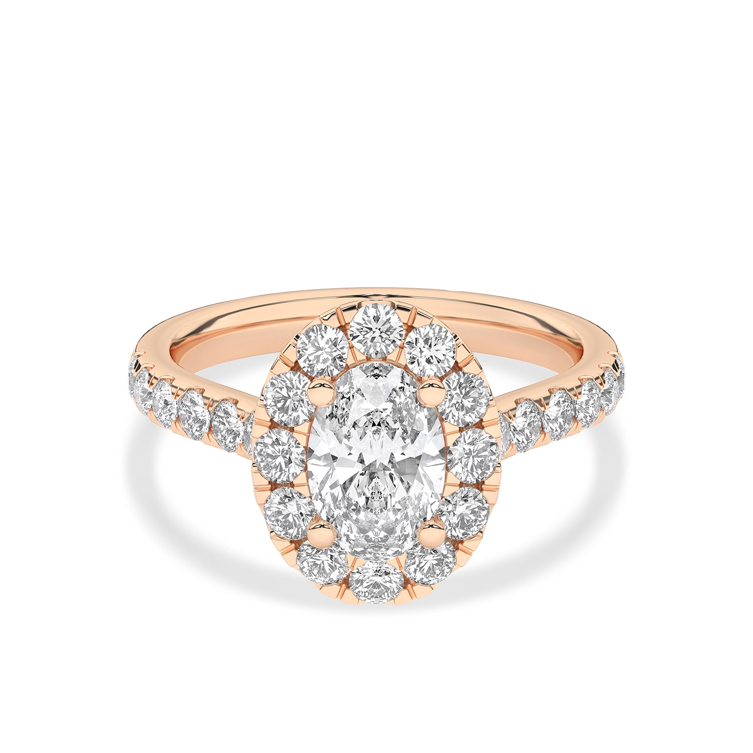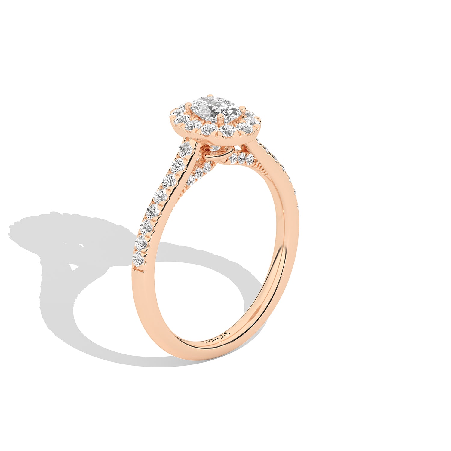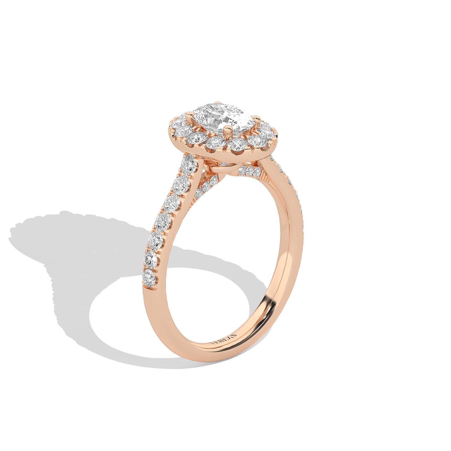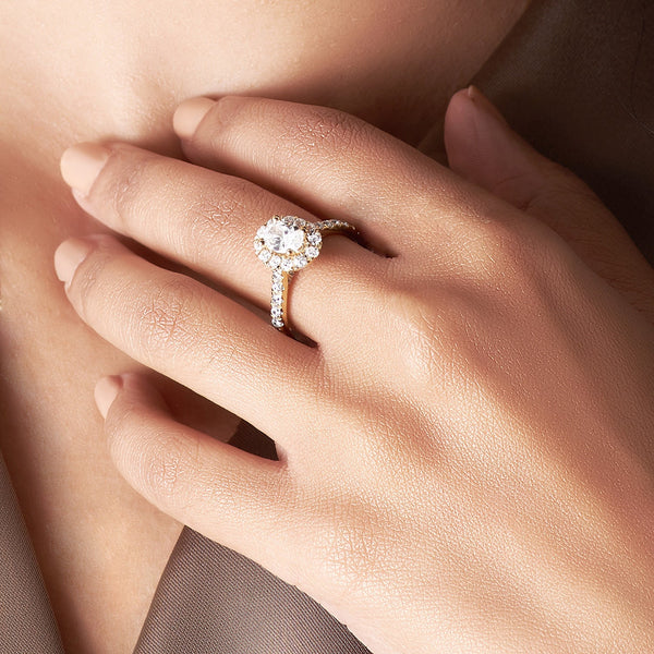 Make a statement with the Signature Ellipse Halo Ring. With its captivating design and shimmering band, it showcases a halo of round diamonds surrounding a brilliant oval-cut diamond. Let this ring be a symbol of your individuality and grace