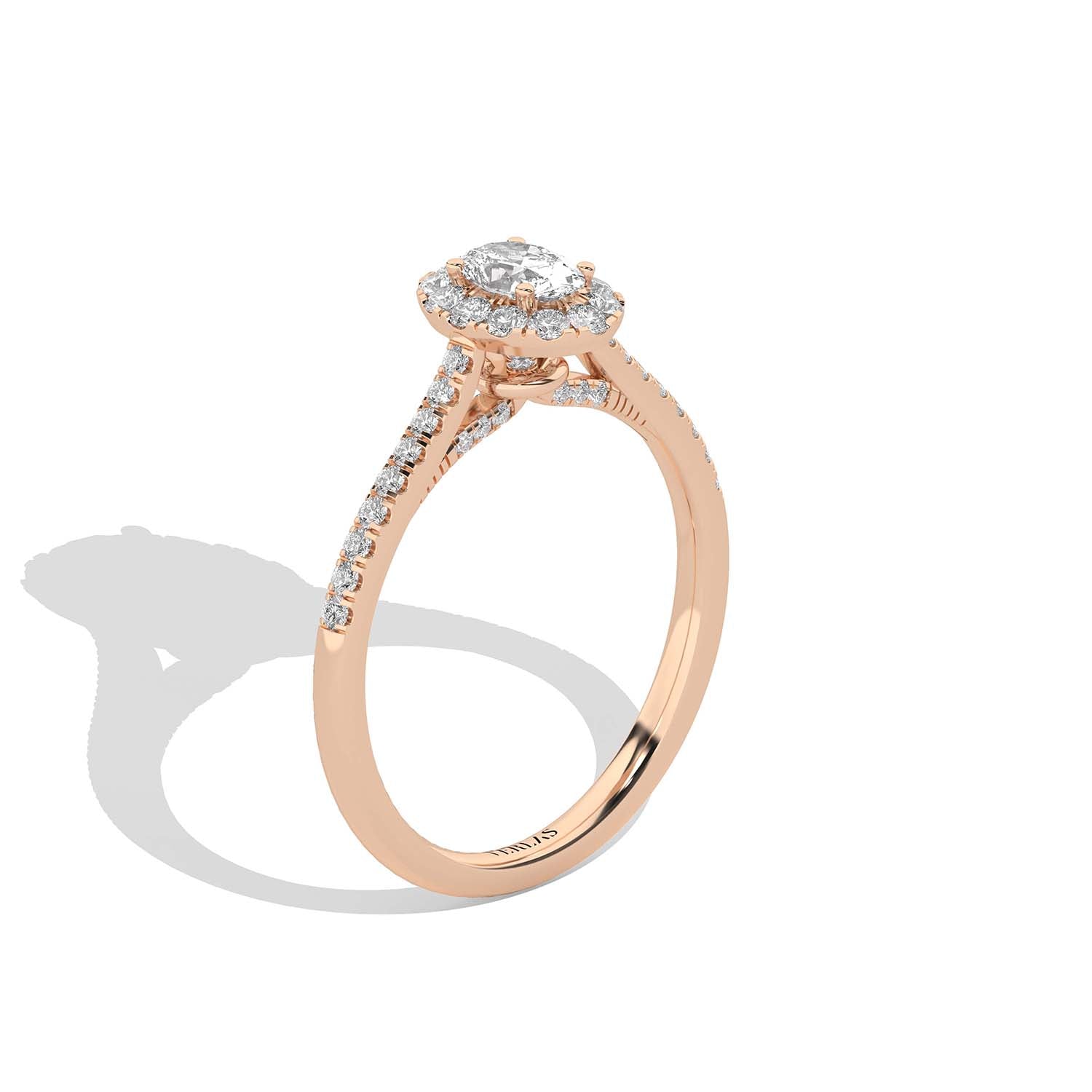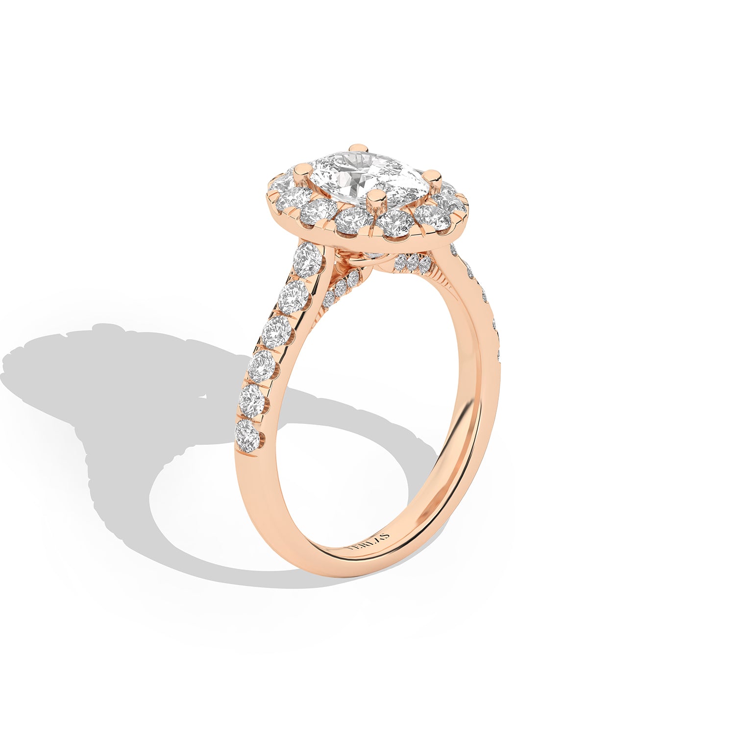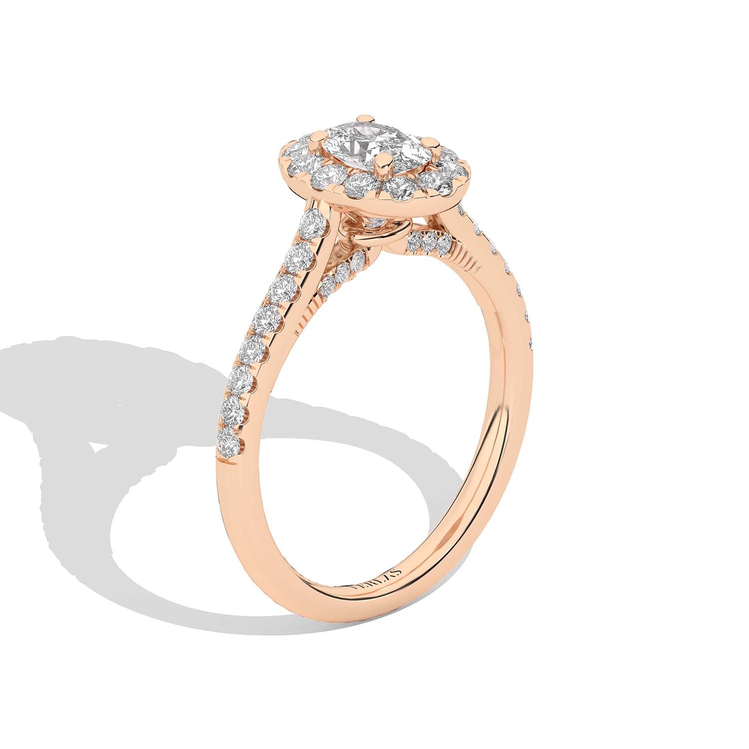 Make a statement with the Signature Ellipse Halo Ring. With its captivating design and shimmering band, it showcases a halo of round diamonds surrounding a brilliant oval-cut diamond. Let this ring be a symbol of your individuality and grace