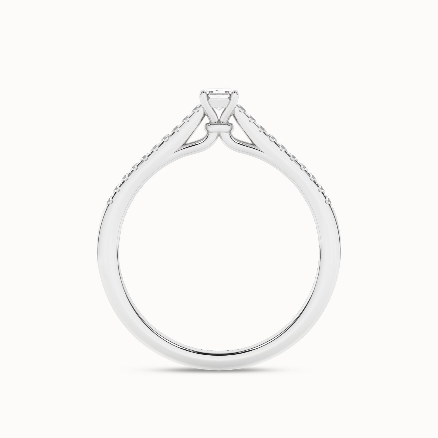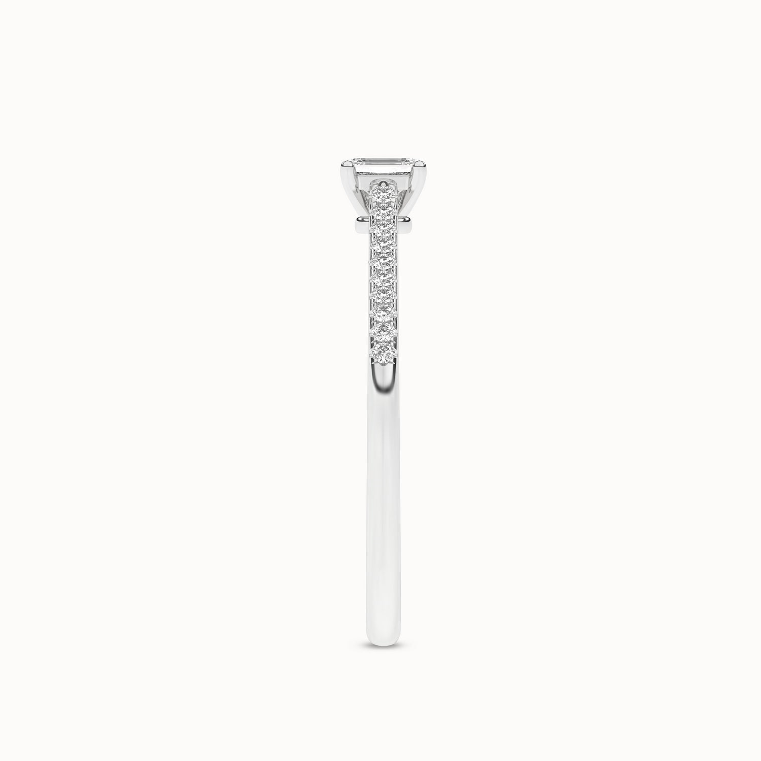 The Signature Emerald Ring is a luxurious and timeless piece. The emerald-cut diamond is set on a sleek gold band in a 4-prong setting. The band itself is studded with shimmering round diamonds. This exquisite ring exudes elegance and sophistication, making it a true statement piece.