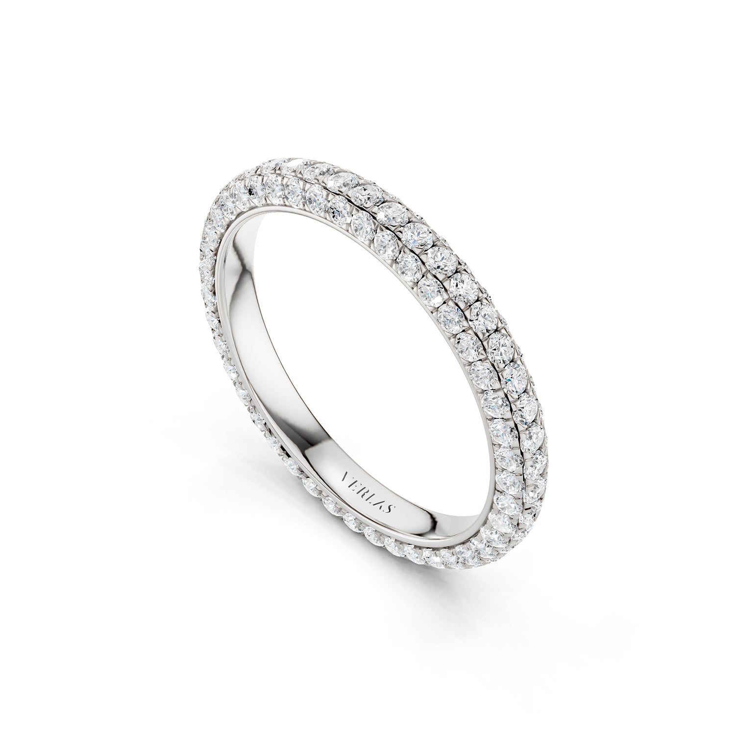 The Signature Eternal Band adorns your finger in pure luxury. The ring is wrapped in rows of radiant diamonds on three sides and reflects the allure of simplicity and precision. This band is a perfect addition to your stacking collection.