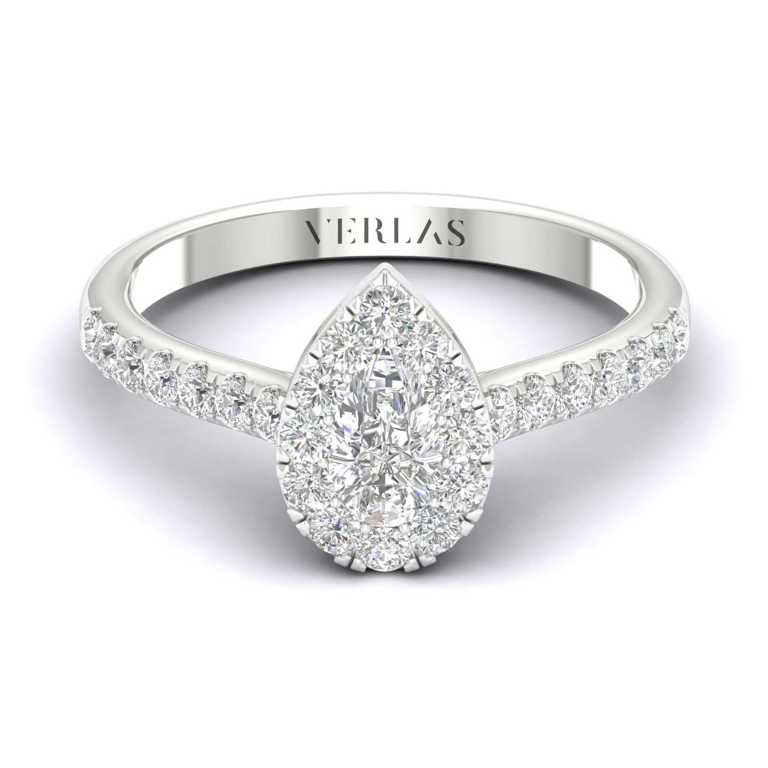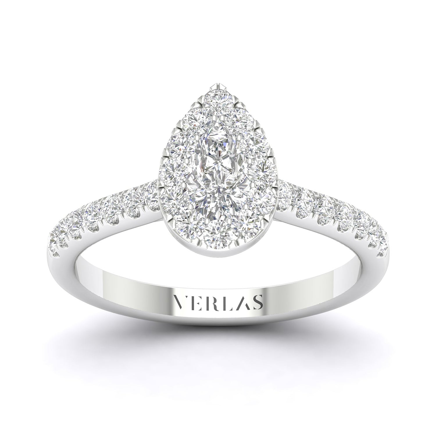 This ravishing Signature Iconic Dewdrop Halo Ring of a pear-shaped diamond illusion centered by petite round diamonds is endearing. With a strikingly brilliant and entirely graceful design, this pear-shaped diamond engagement ring is a beautiful choice to mark your life'. . . Read More