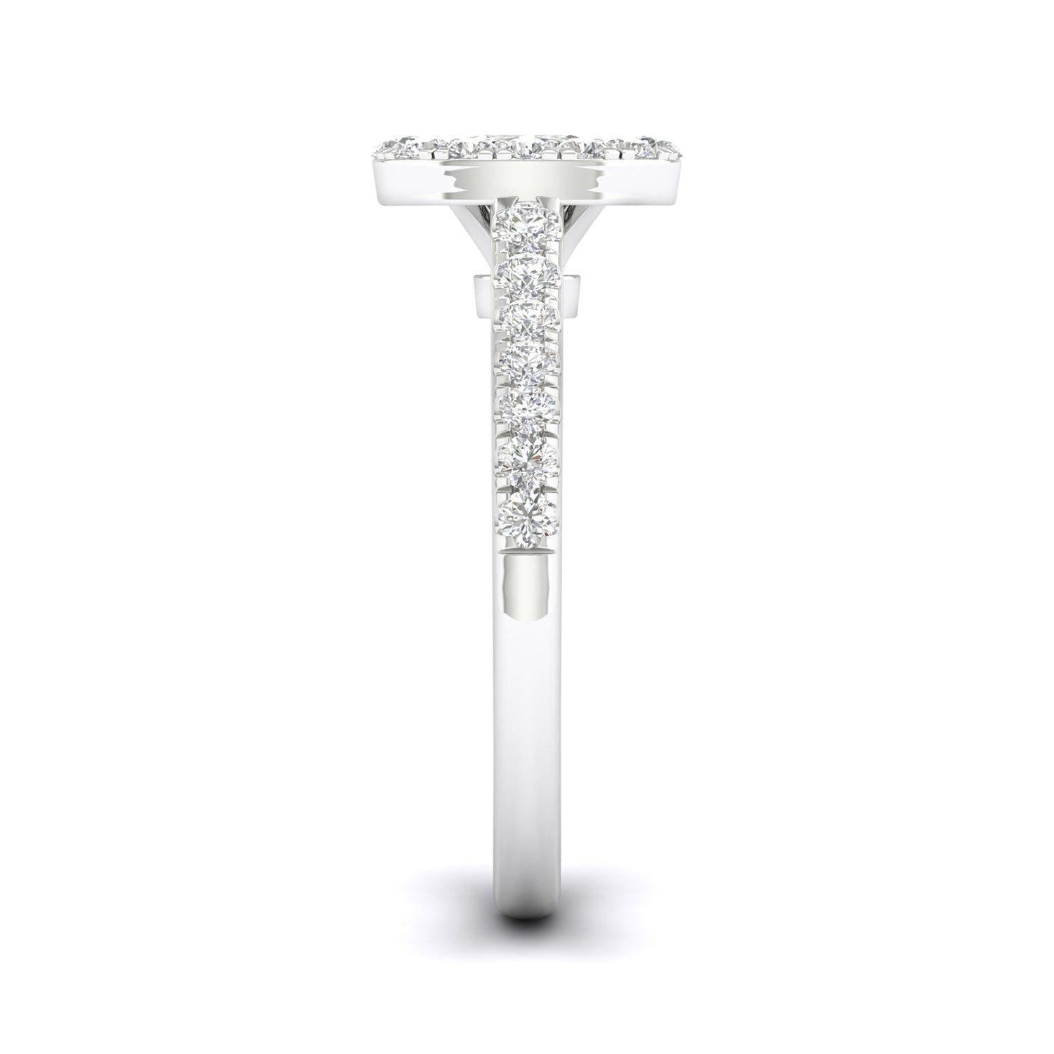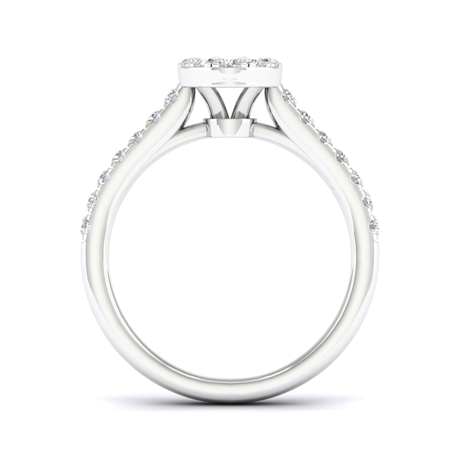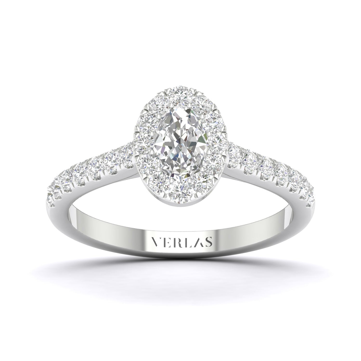 At the heart of this Signature Iconic Ellipse Halo Diamond Engagement Ring is a magnificent ellipse-cut diamond, nestled with a halo of radiant round diamonds. The band of this diamond engagement ring is adorned with a multitude of tiny, sparkling diamonds, meticulously set to perfection. It is the ultimate choice for those who seek a ring that makes a statement.