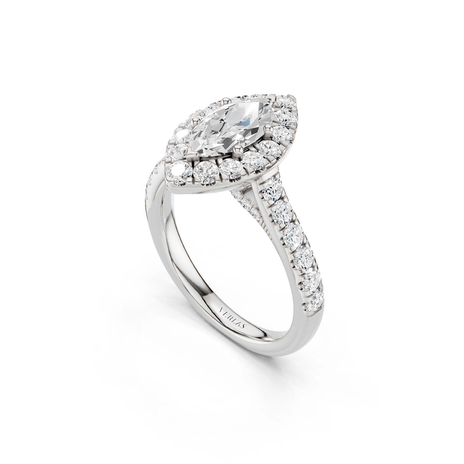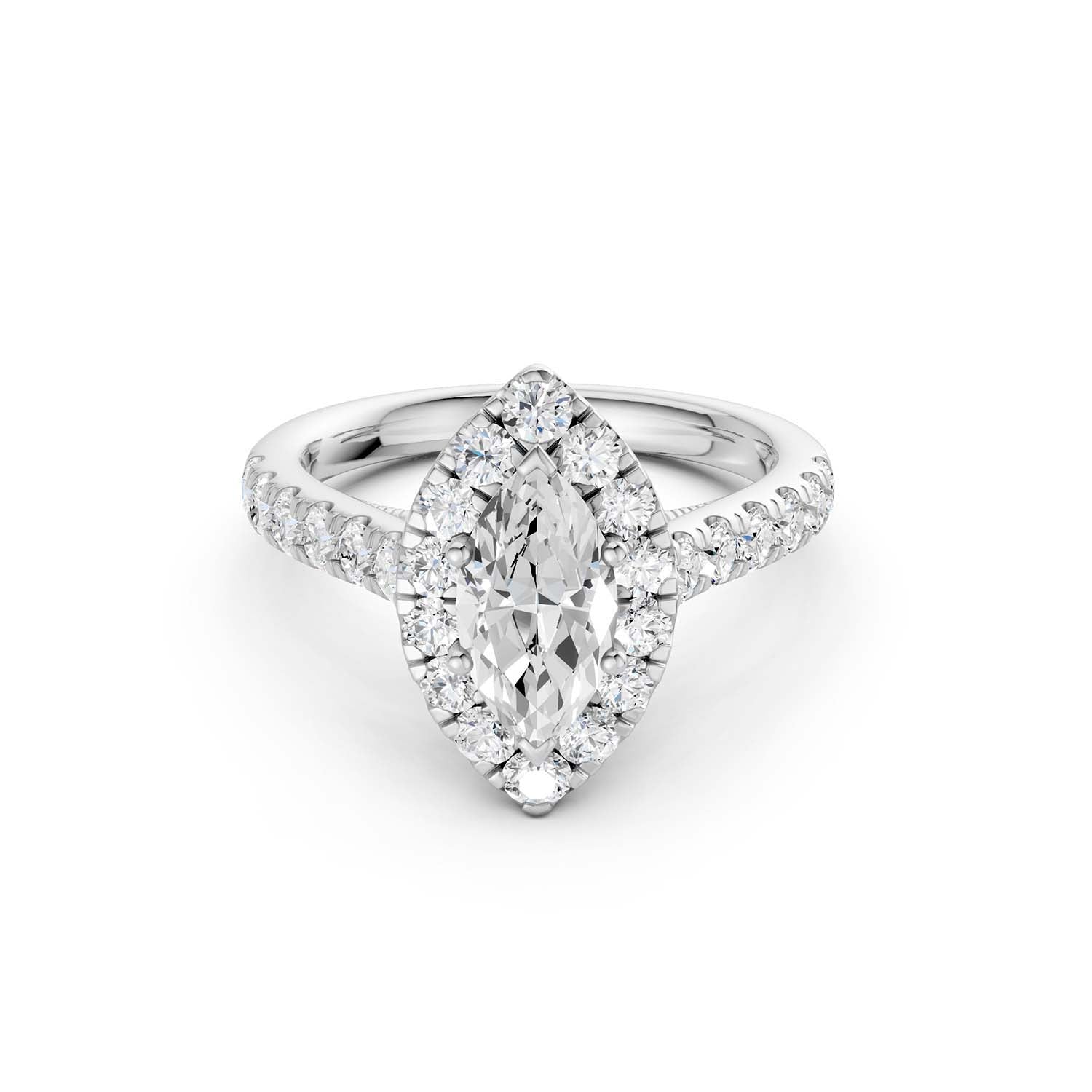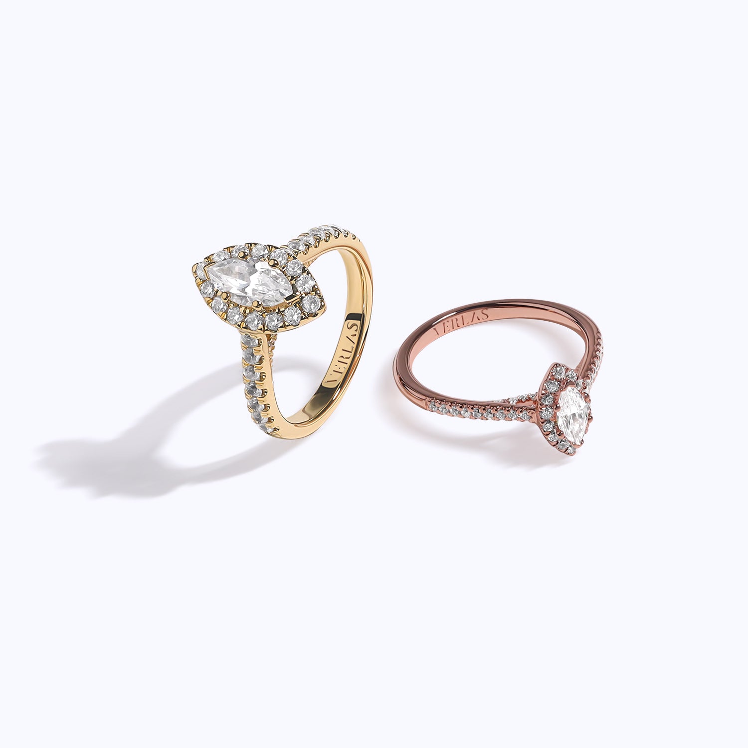 The Signature Marquise Halo Ring is a true statement of sophistication. The marquise-cut diamond, surrounded by a halo of smaller diamonds, creates a captivating visual effect. Crafted in gold, this ring is an embodiment of grace and elegance.
