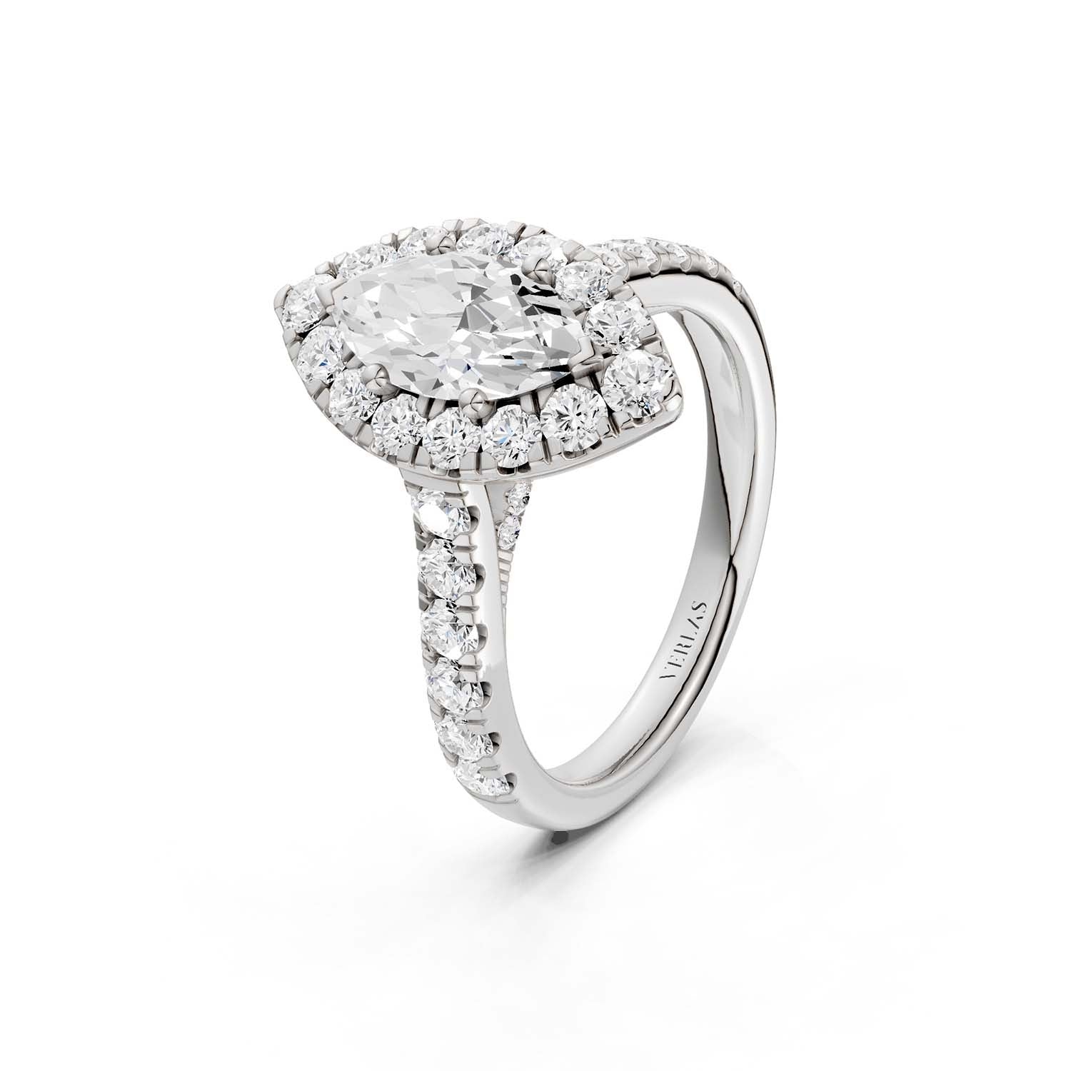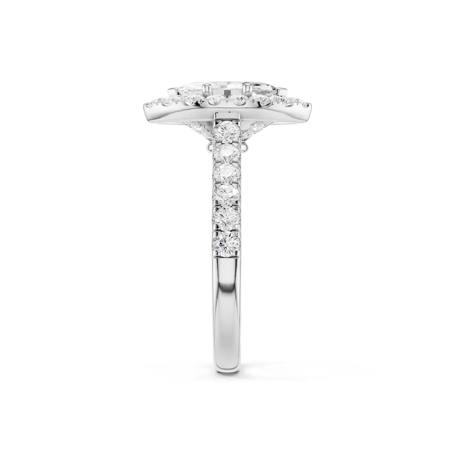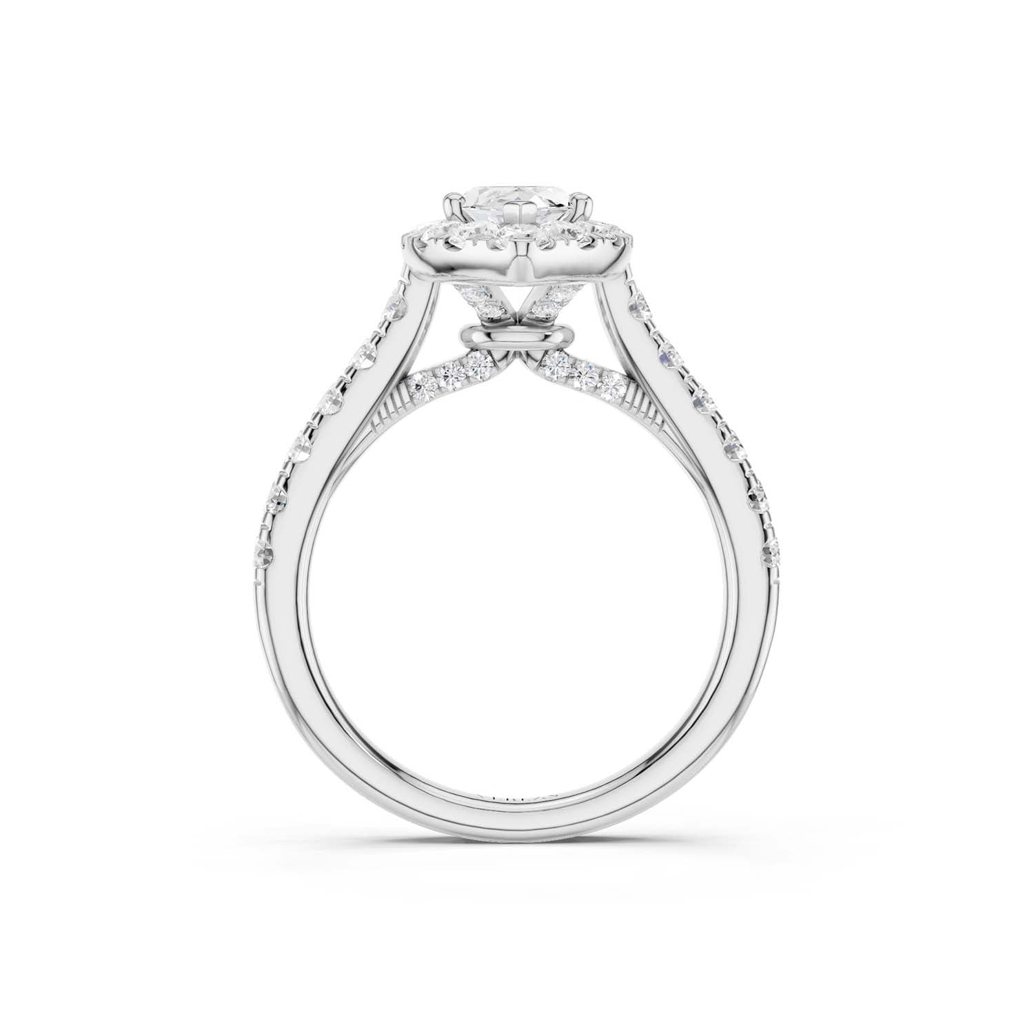 The Signature Marquise Halo Ring is a true statement of sophistication. The marquise-cut diamond, surrounded by a halo of smaller diamonds, creates a captivating visual effect. Crafted in gold, this ring is an embodiment of grace and elegance.