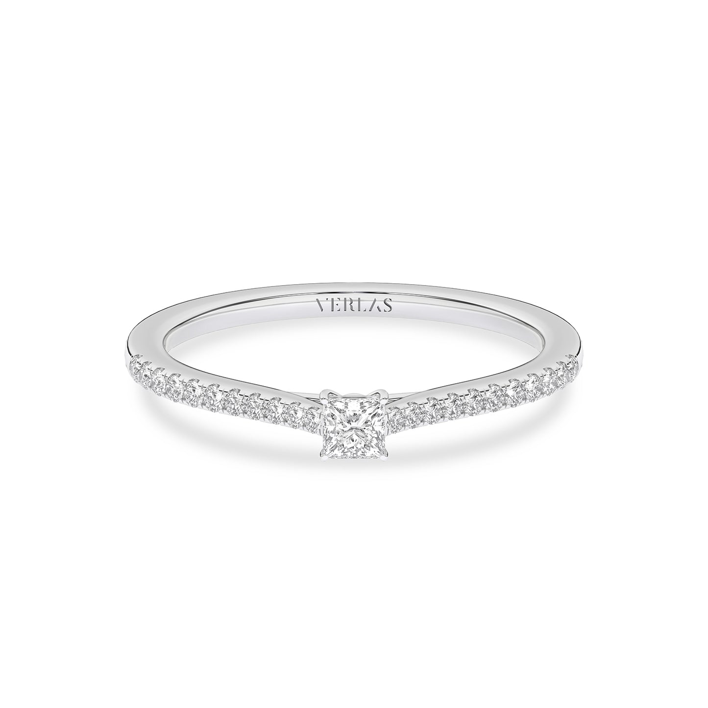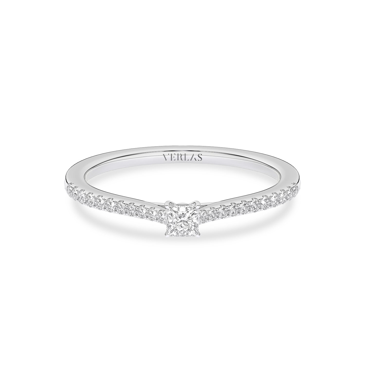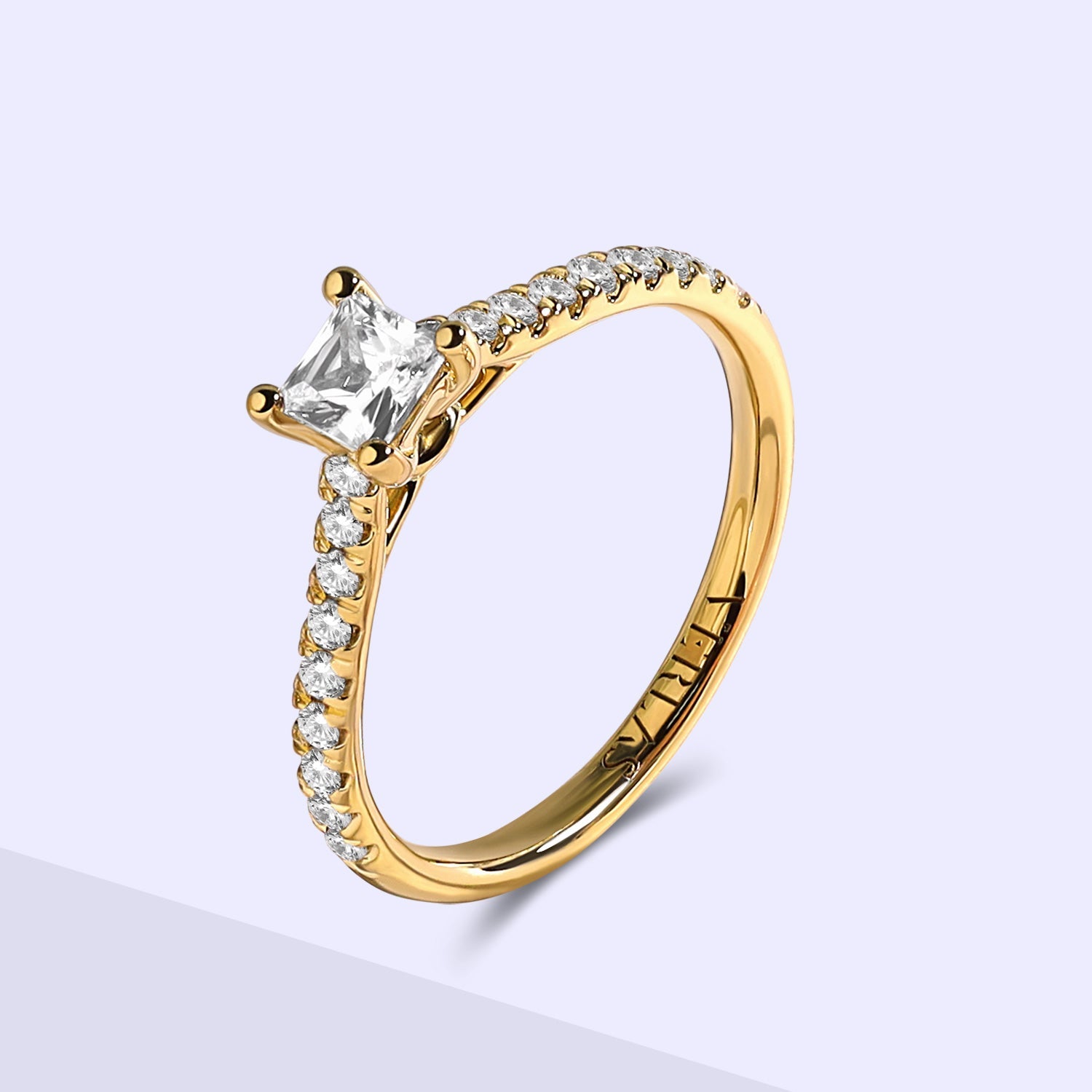 The Signature Princess Ring exceptionally showcases a princess-cut diamond's beauty and brilliance. The primary diamond is set in a four-prong setting that allows maximum light to enter and reflect, creating a dazzling sparkle. The band is sleek, smooth, and studded with secondary diamonds set in a micro-pave setting. This Princess Diamond Ring is a timeless and elegant choice for any occasion, whether it’s an engagement, an anniversary, or just a treat for yourself