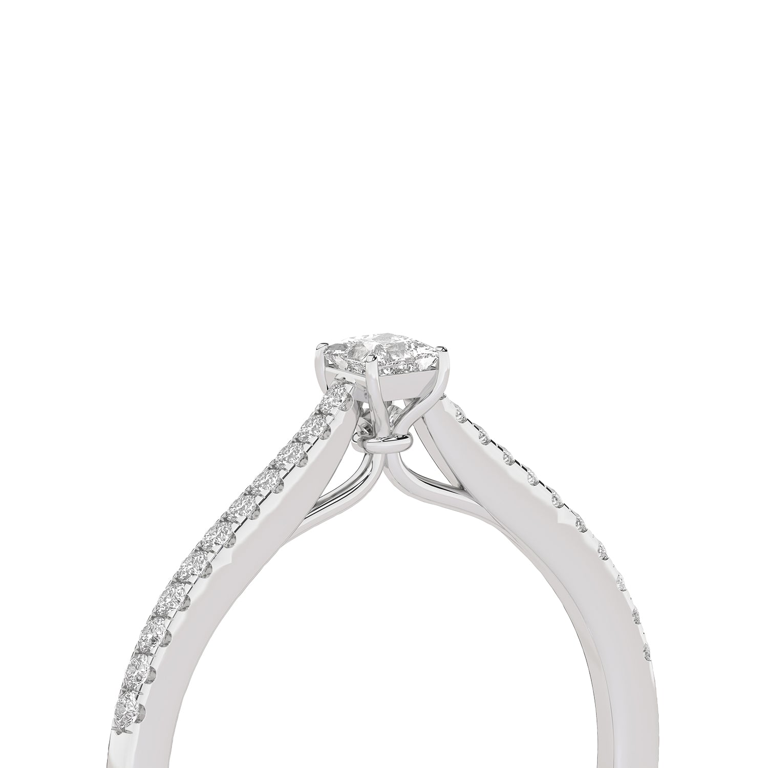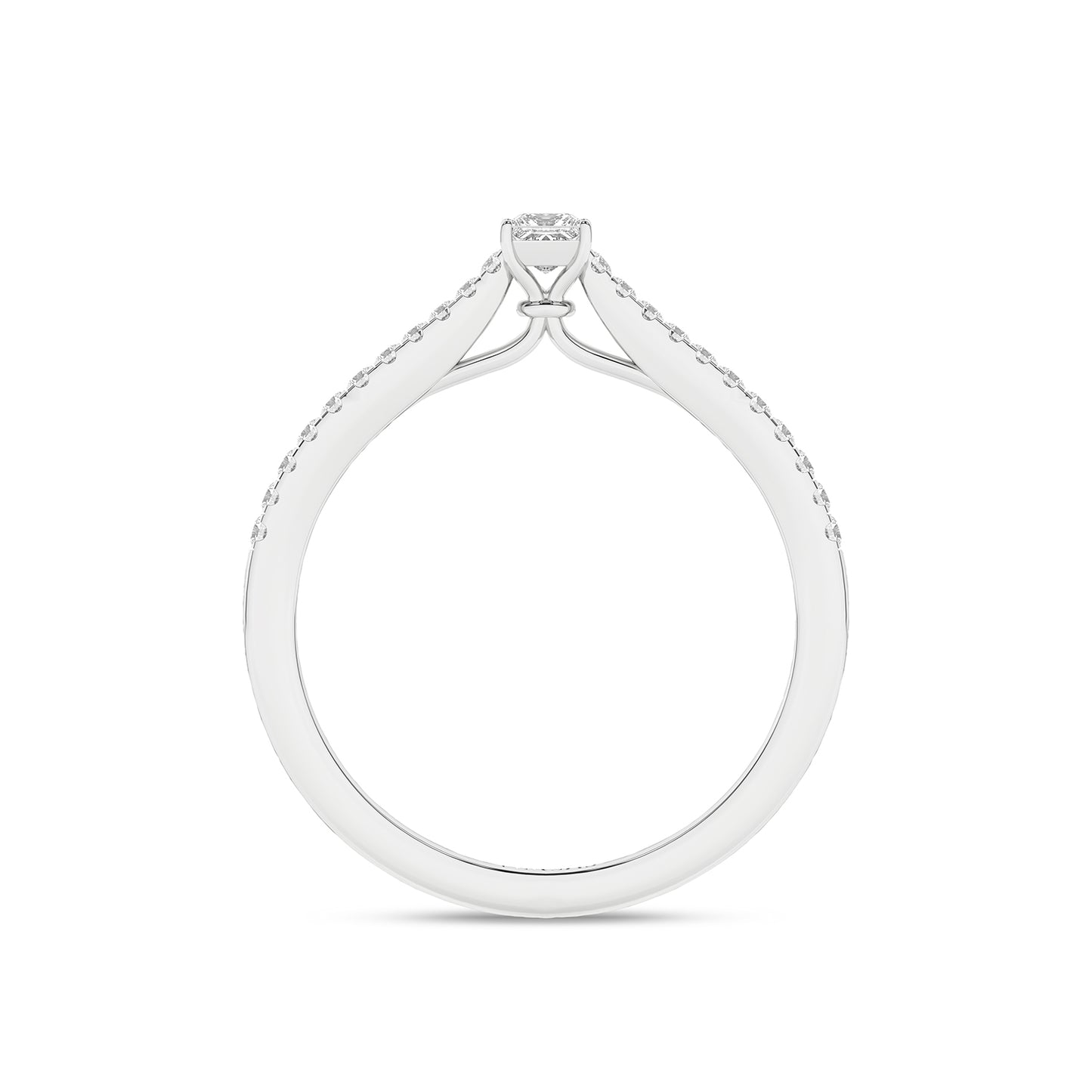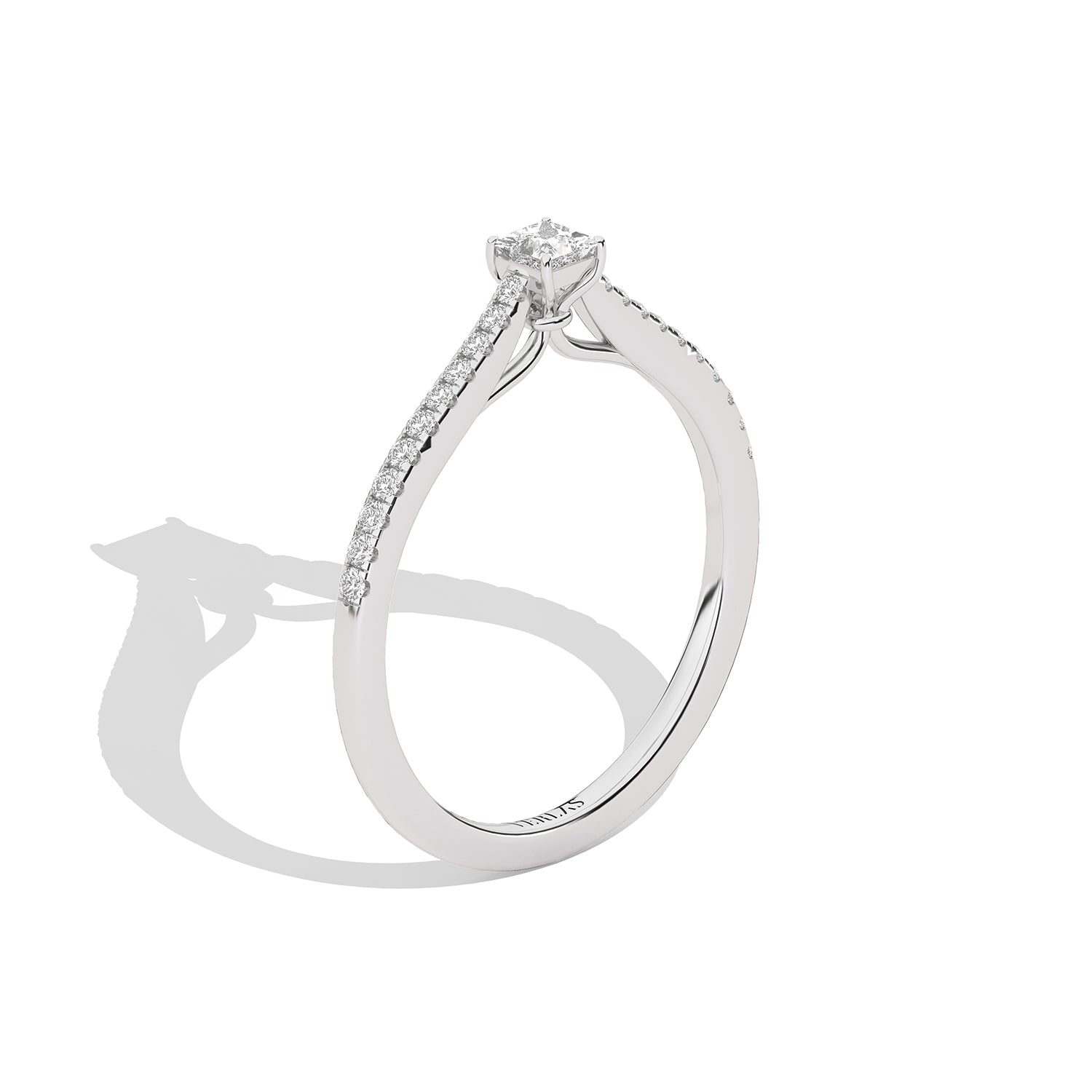 The Signature Princess Ring exceptionally showcases a princess-cut diamond's beauty and brilliance. The primary diamond is set in a four-prong setting that allows maximum light to enter and reflect, creating a dazzling sparkle. The band is sleek, smooth, and studded with secondary diamonds set in a micro-pave setting. This Princess Diamond Ring is a timeless and elegant choice for any occasion, whether it’s an engagement, an anniversary, or just a treat for yourself