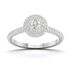 This Signature Round Double Halo Diamond Engagement Ring showcases a brilliant round-cut diamond at its heart, embraced by not one, but two resplendent diamond halos. Celebrated for its classic and timeless appeal, this double halo diamond engagement ring perfectly captures the essence of enduring love.