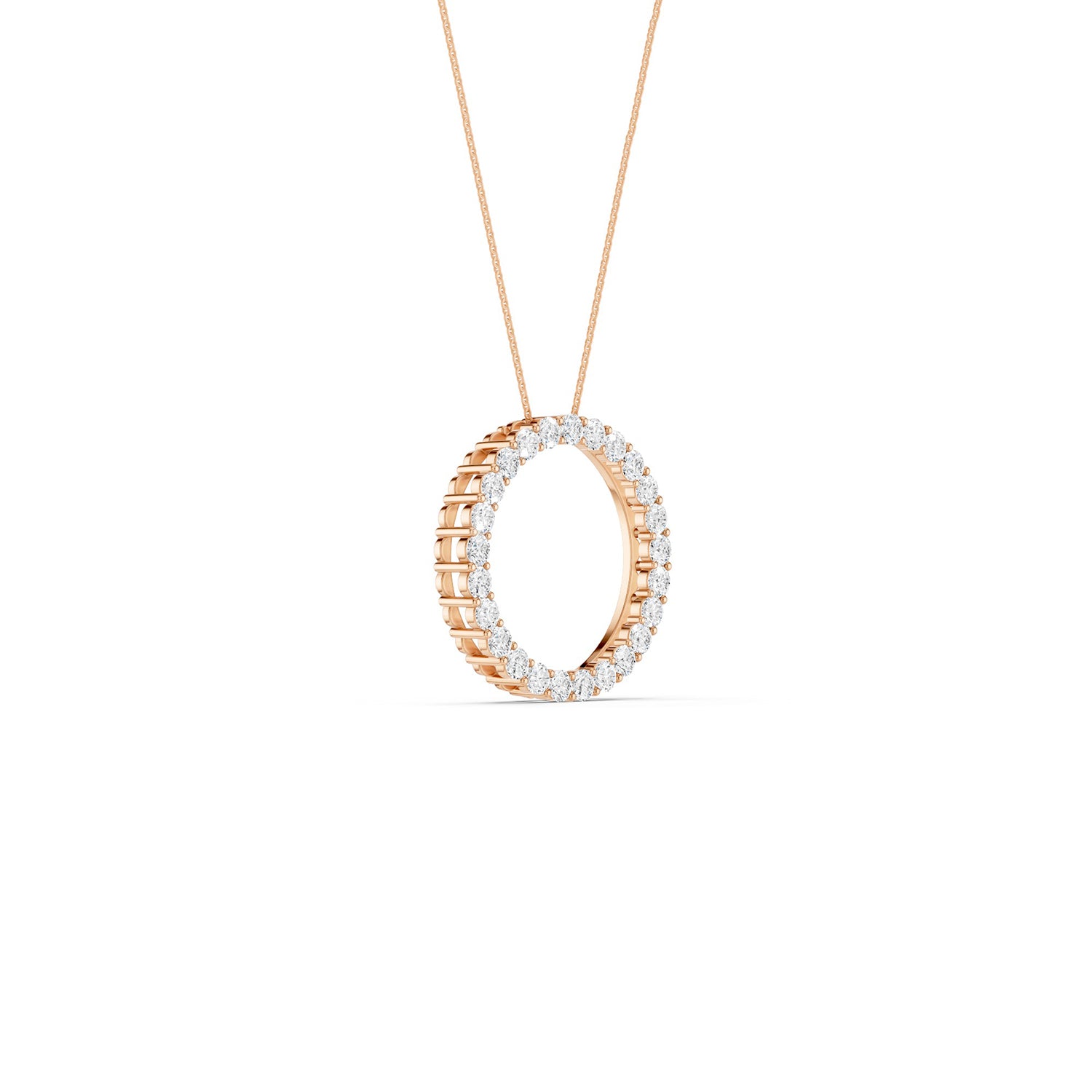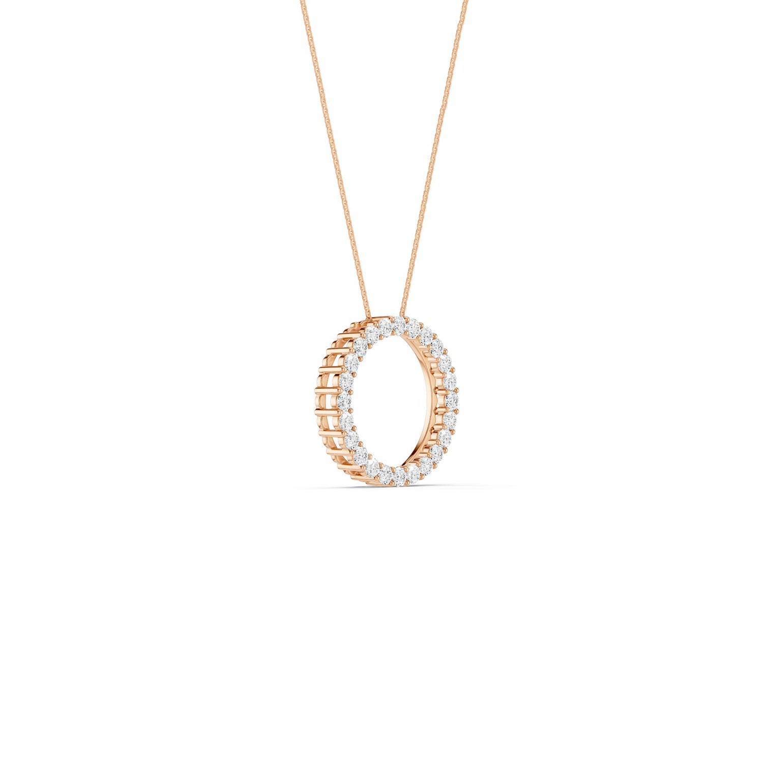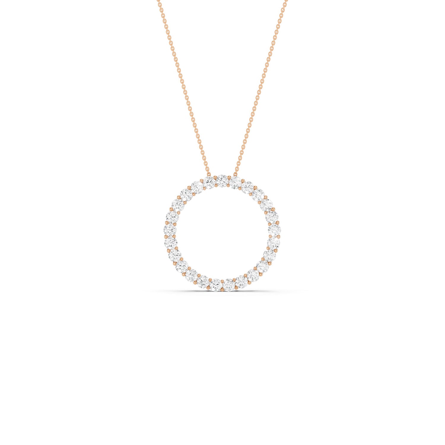 This circular silhouette Pendant with the best lab-made diamonds adds glamour to your every look. A classic shared prong setting forming a splendid silhouette gives an unmatched grandeur to the piece, making lab-grown pendants an excellent gifting option.
