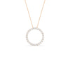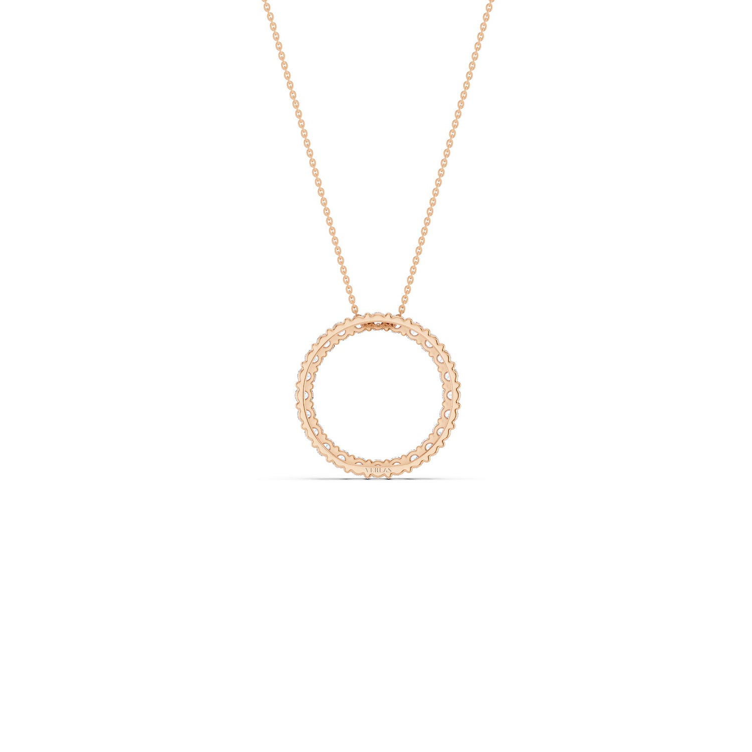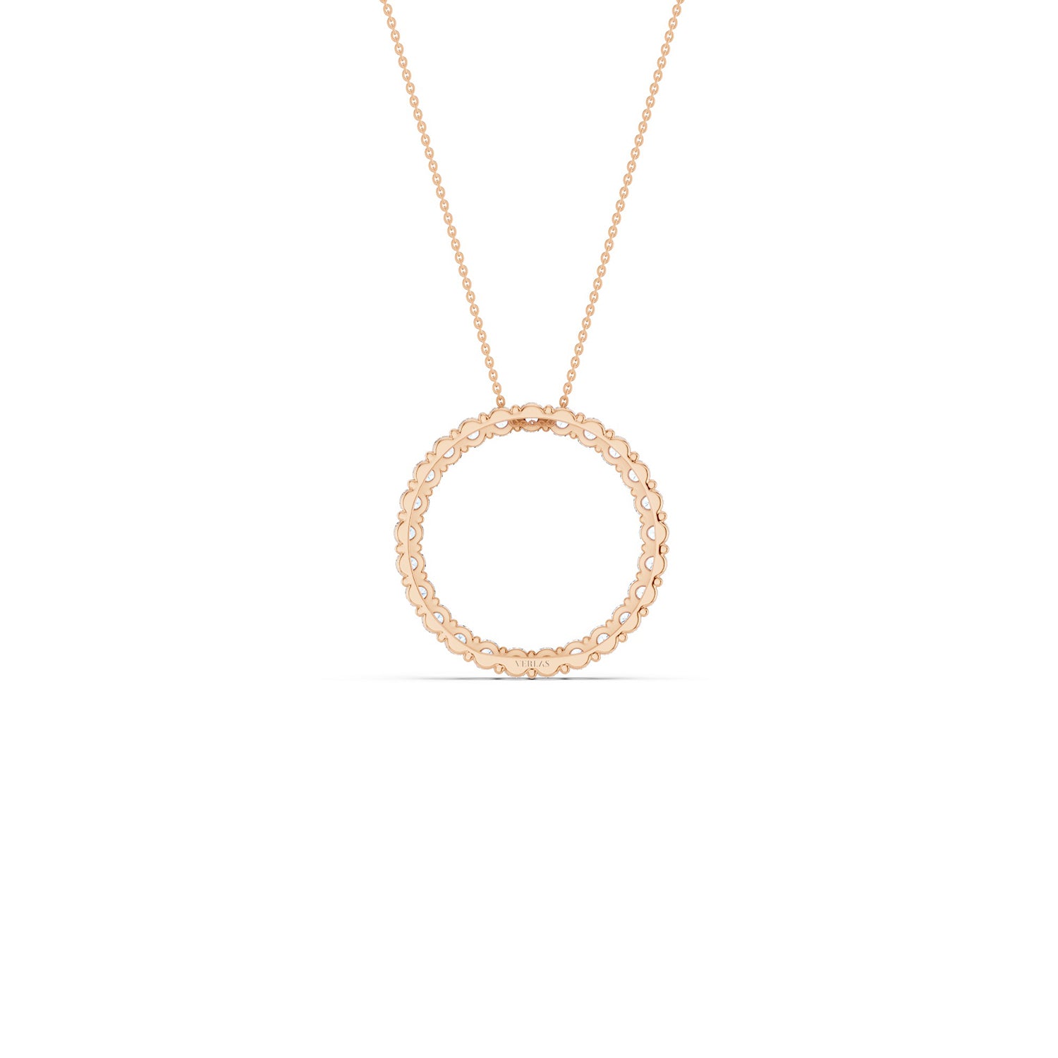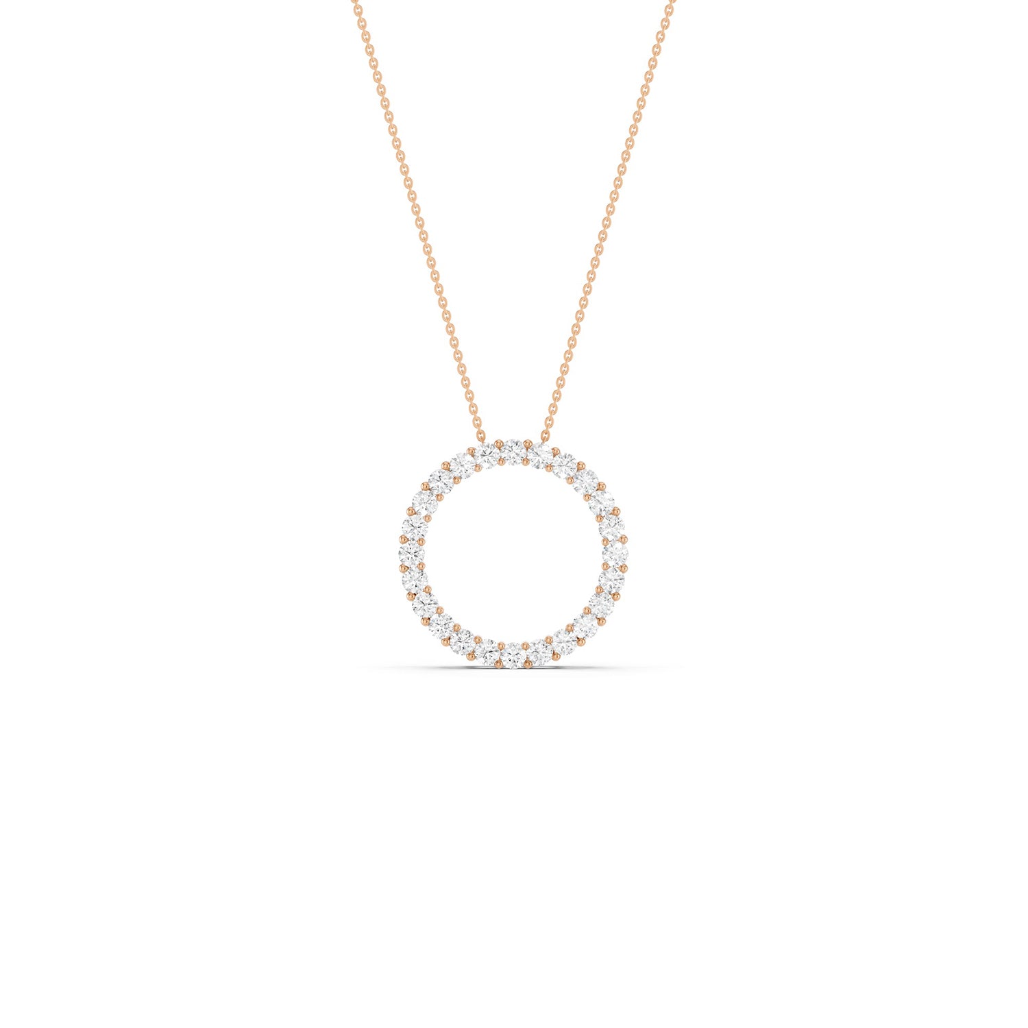 This circular silhouette Pendant with the best lab-made diamonds adds glamour to your every look. A classic shared prong setting forming a splendid silhouette gives an unmatched grandeur to the piece, making lab-grown pendants an excellent gifting option.