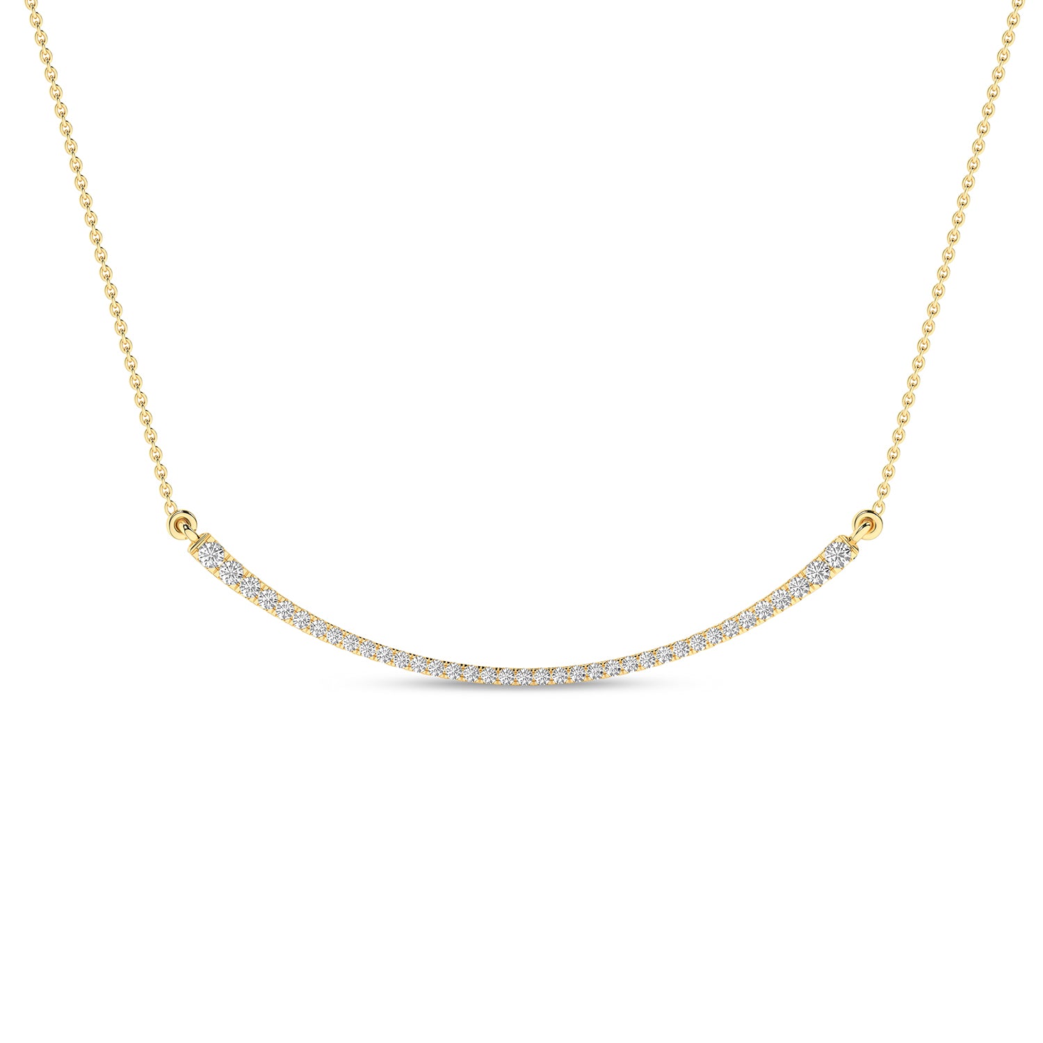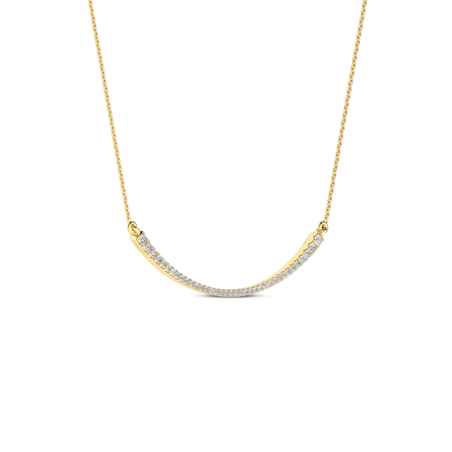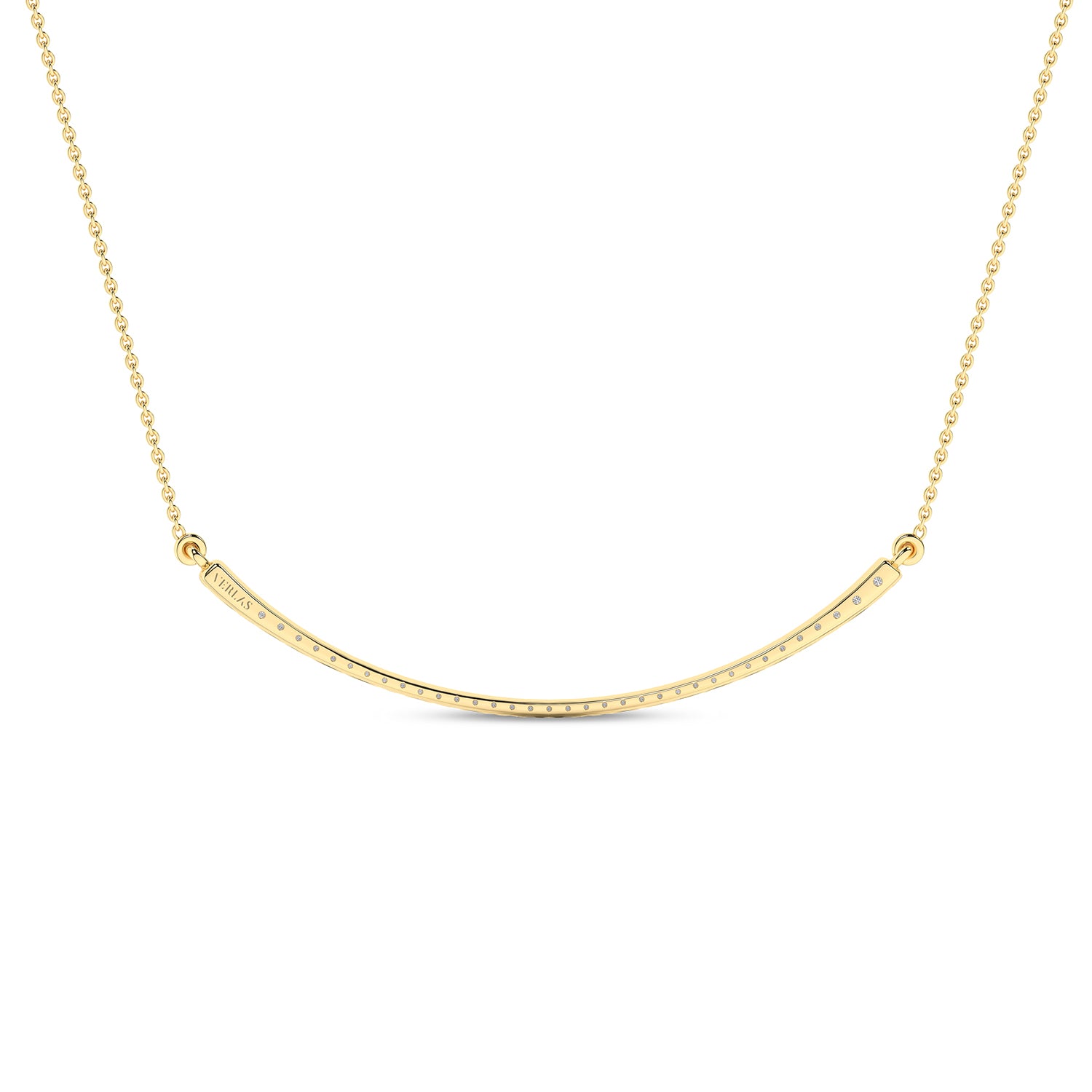 Introducing the Smile Necklace, a testament to its exquisite artistry and the joy that it brings to the wearer. Crafted with the utmost care, this necklace features a captivating solid gold smile-shaped pendant studded with diamonds in a micropave setting. Precious diamonds grace its curves, exuding an irresistible charm that mimics your smile.