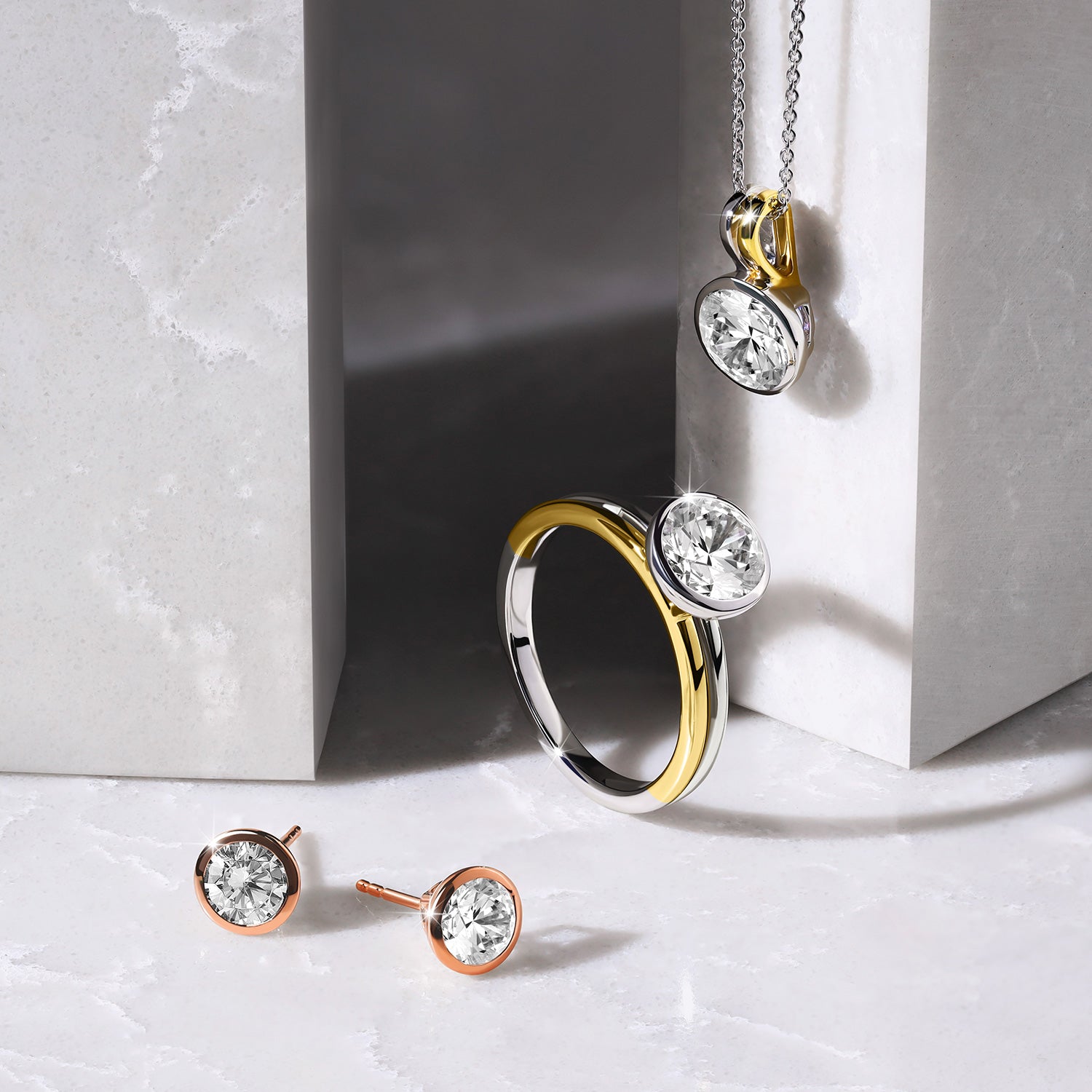 Cubic Zirconia (CZ) simulates the beauty of a diamond but differs drastically in its quality and value. Your Try-at-Home replica jewelry is made with CZ to mimic the beauty of real jewelry at a fraction of a cost so you can feel confident in knowing what your real Verlas jewelry will look like.