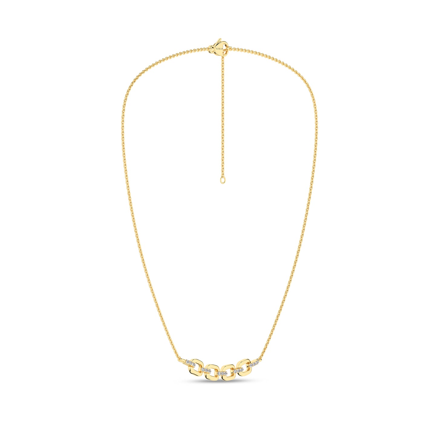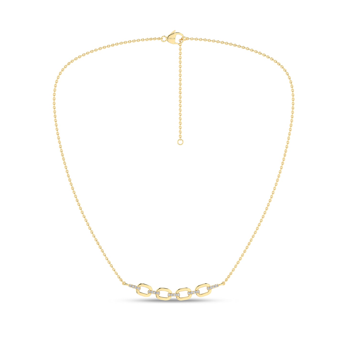 Designed to be light and airy, the elegance of this necklace with rectangular links of brilliant round diamonds creates a scintillating sparkle.