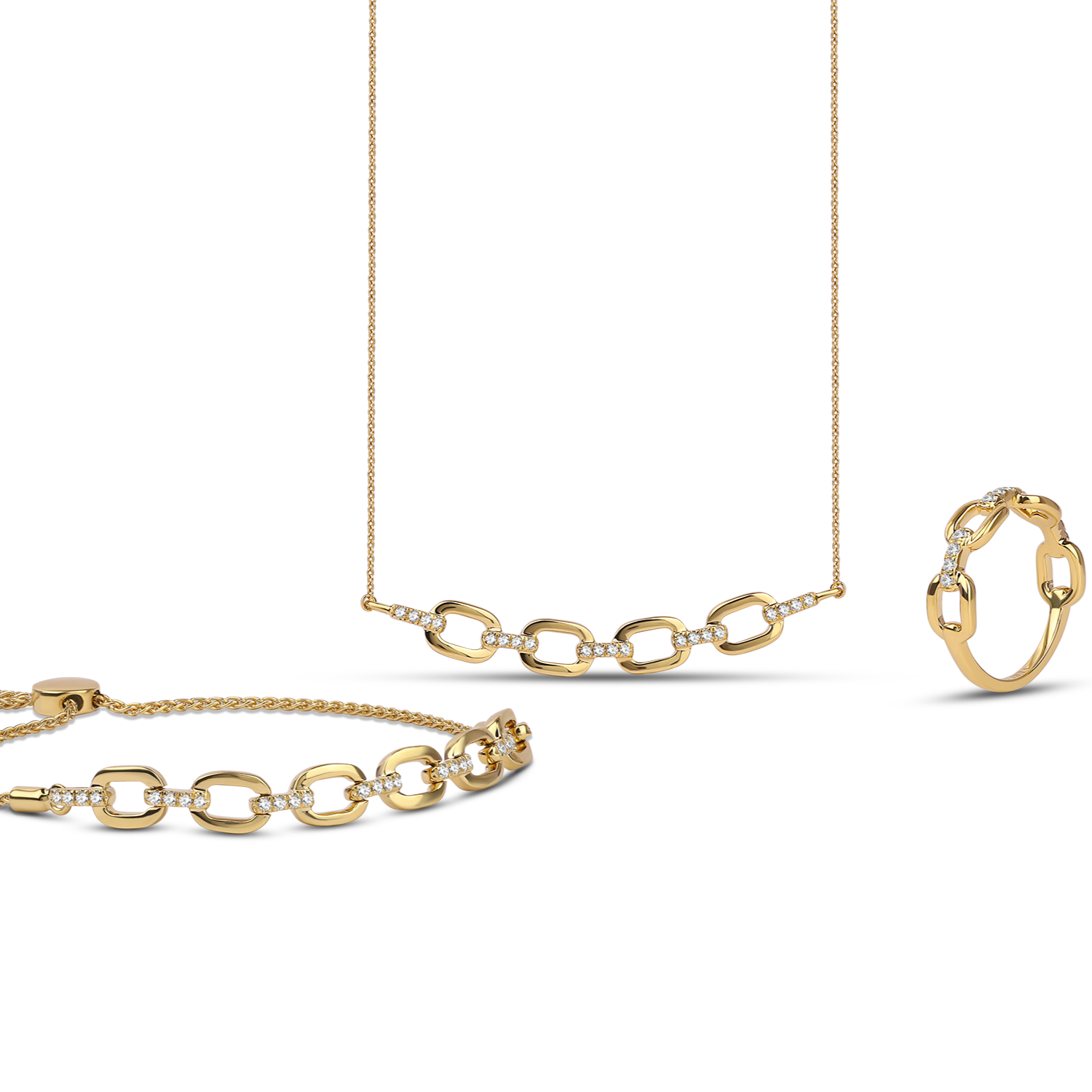 Symbolizing deeper connections, Le Bon by Verlas celebrates enduring links of love. This diamond jewelry collection captures the warmth of relationships with radiant gold links set with sparkling diamonds. Its minimal design conveys soft elegance and sophistication from every angle. Stunning, scintillating, and swaying its way into your heart, this collection offers a wide array of earrings, rings, necklaces, and bracelets. Create your personalised linked ensemble with