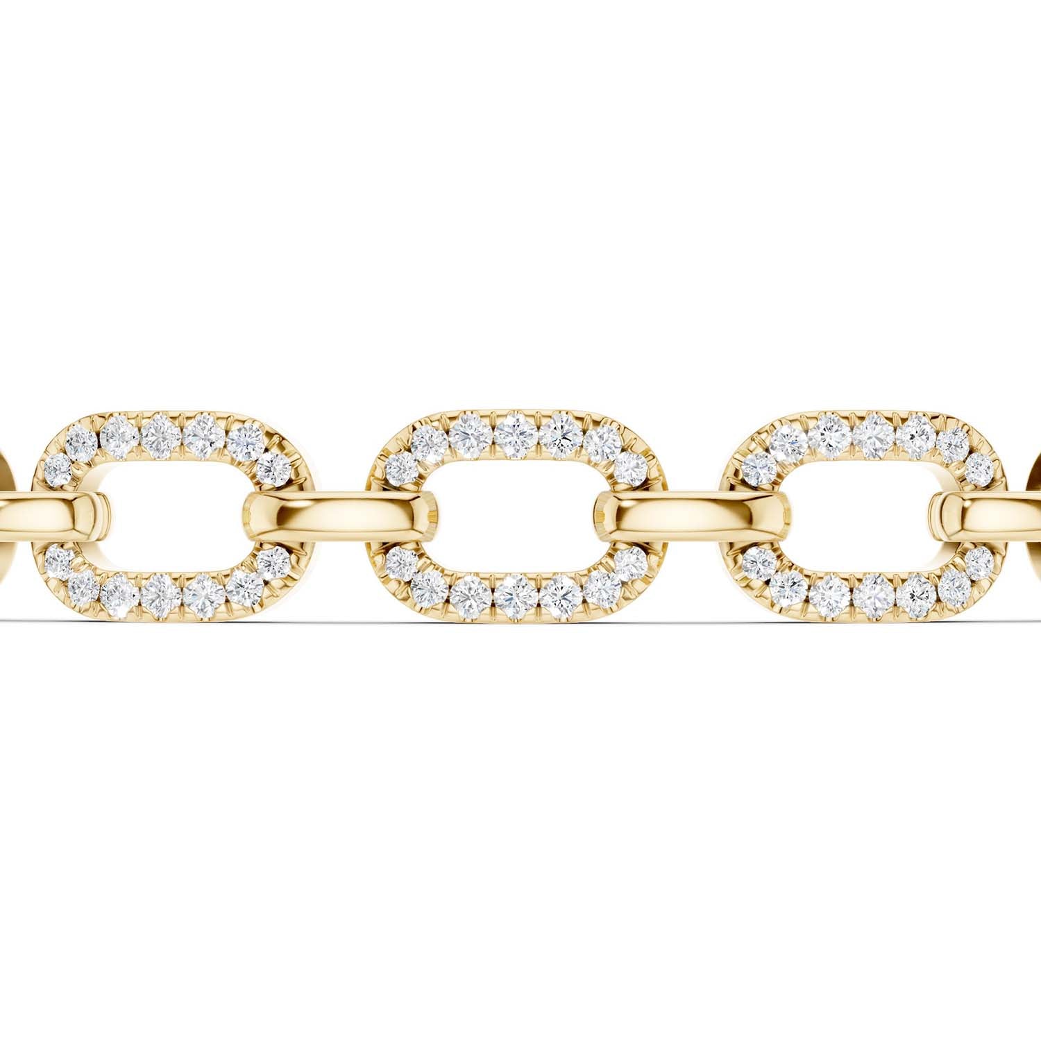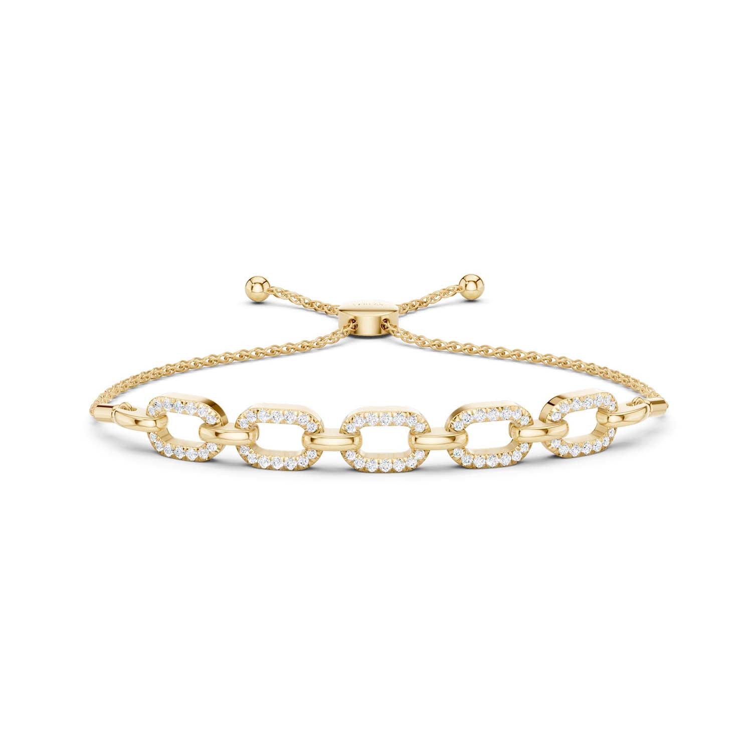 The bracelet is made up of 5 pave diamond links united by gold connectors. With a timeless design and adjustable slider clasp, this bracelet is imbued with style and comfort.