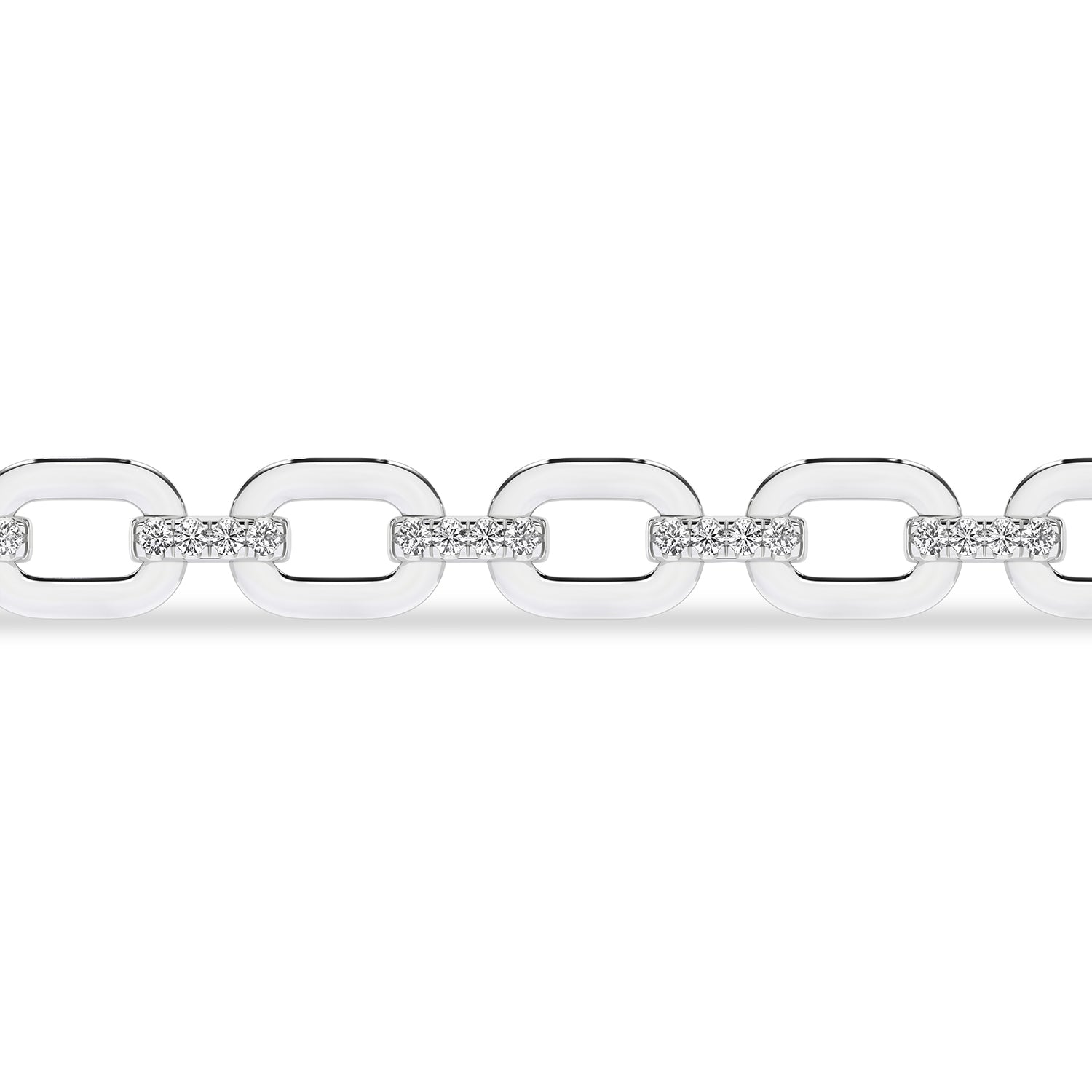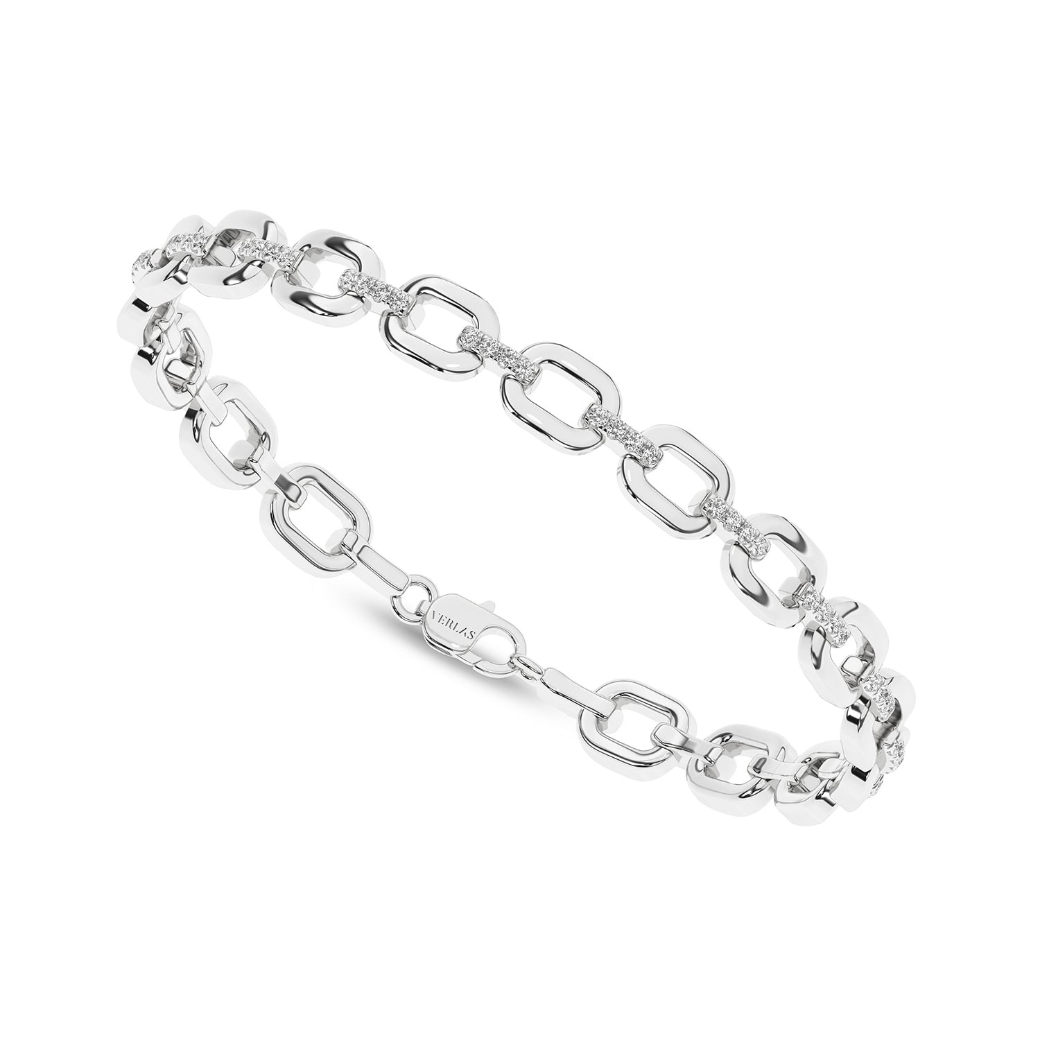 Intertwined in timeless elegance, this bracelet features a trail of sleek diamond links, embodying modern luxury. With its simple, yet contemporary design, it is the perfect addition to any ensemble. Together forever, this bracelet is a symbol of everlasting love and commitment.