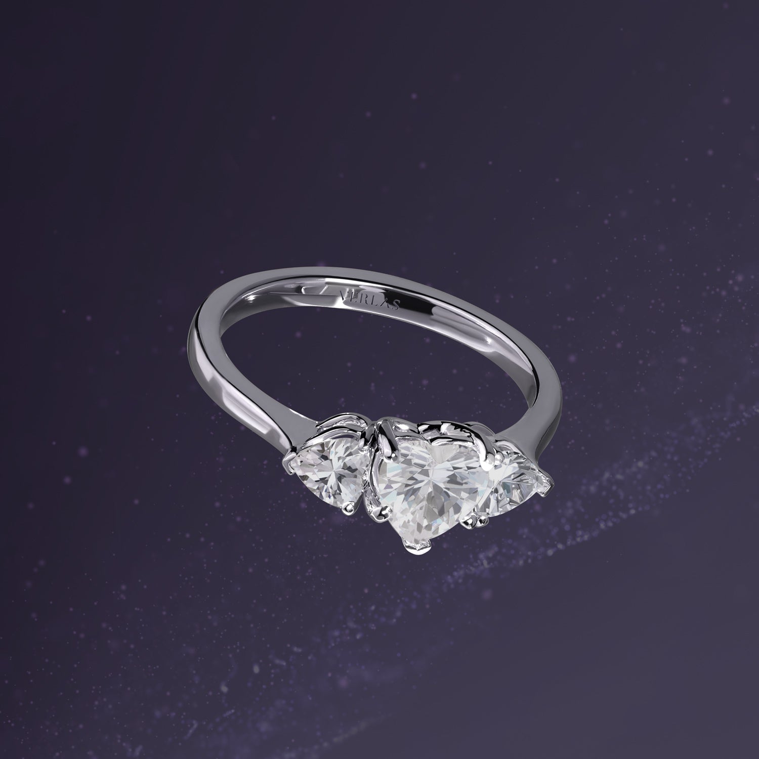 The Trinity Heart Ring is a beautiful representation of love's journey. This elegant gold ring features a trio of sparkling heart-shaped lab-grown diamonds. A single larger heart-shaped diamond takes center stage, symbolizing the strength and depth of love. It is gracefully flanked by two smaller heart-shaped diamonds, representing the companionship and support that nurture a loving relationship.