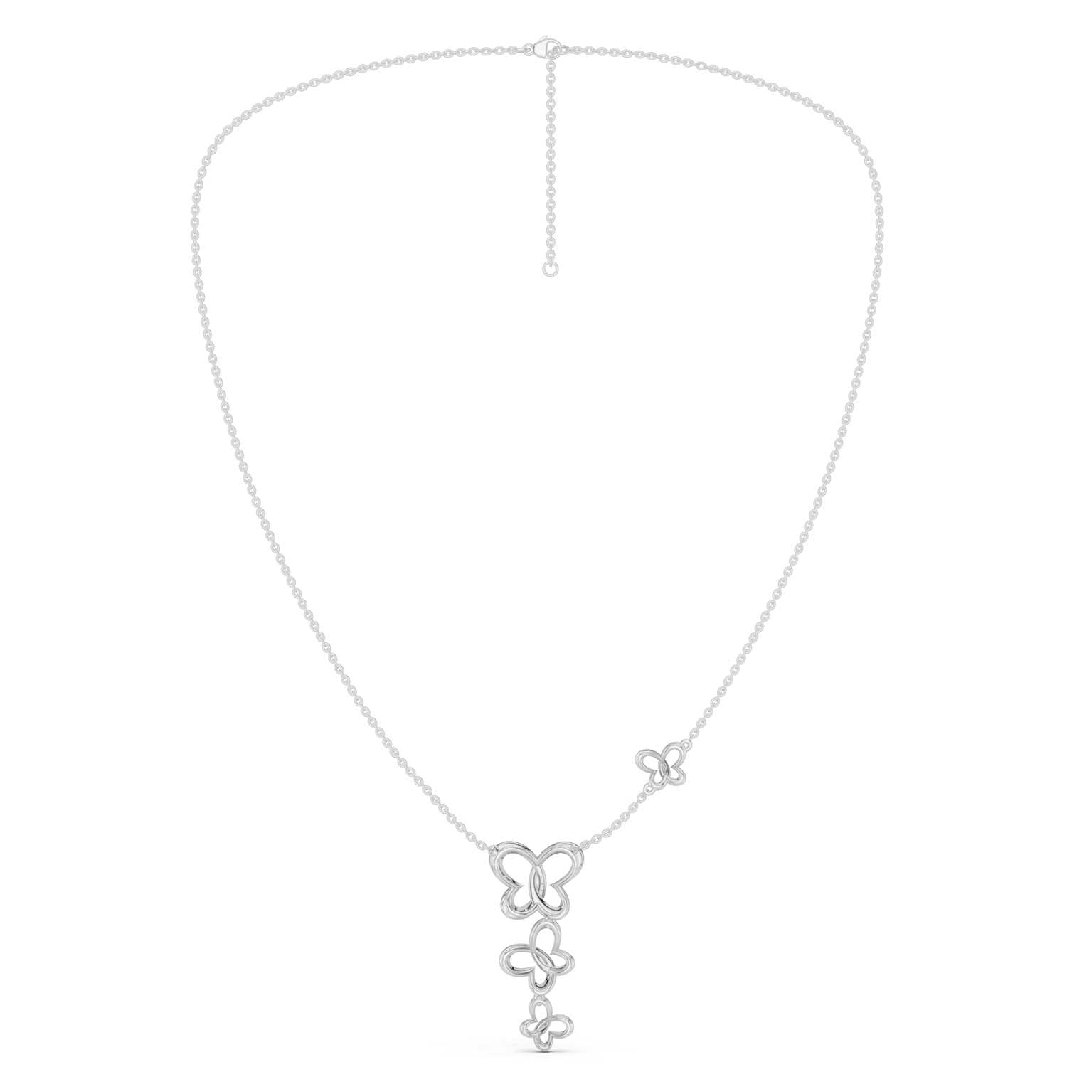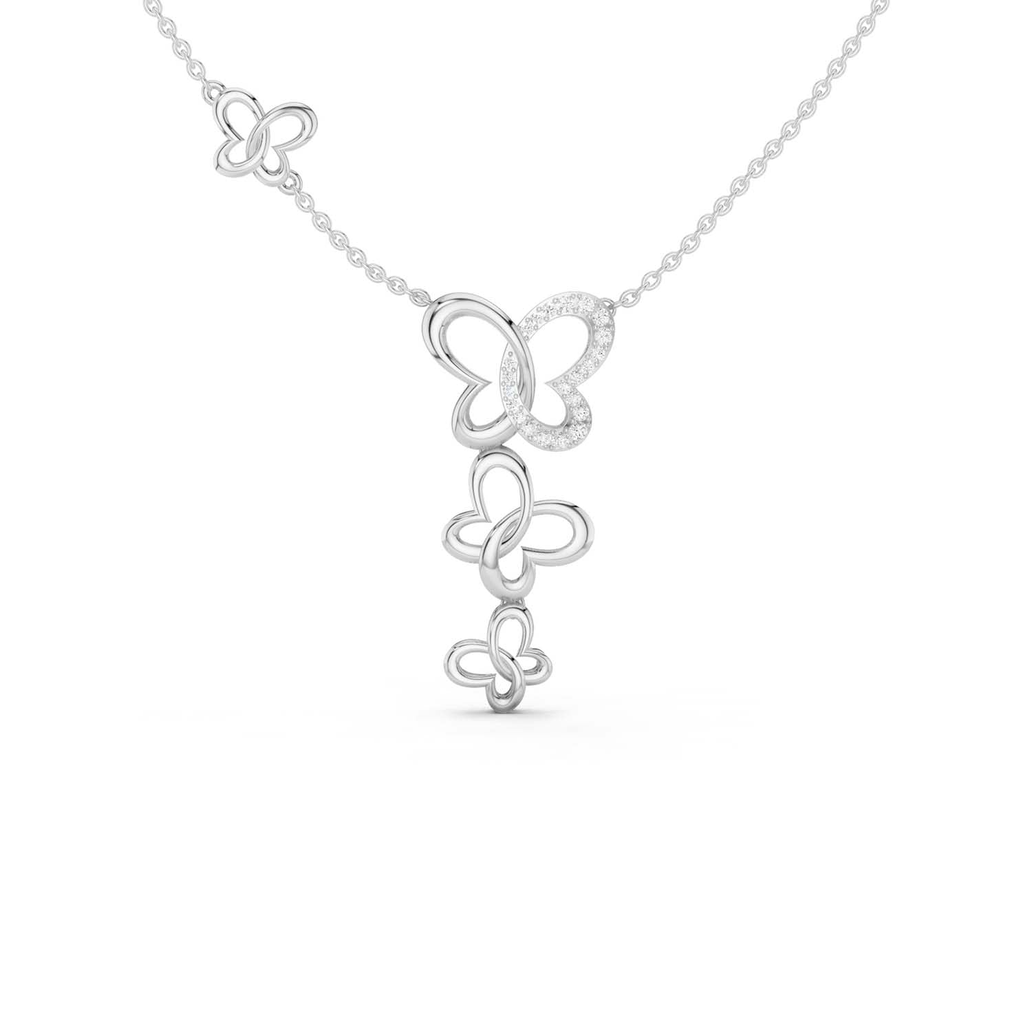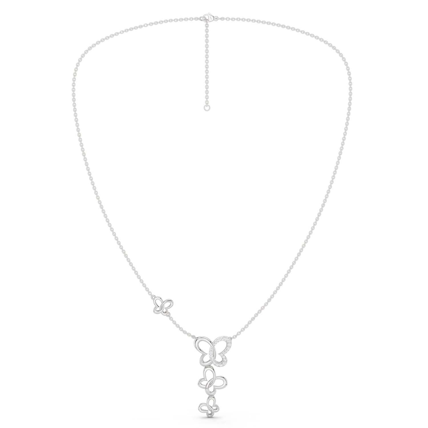 The Triple Butterfly Drop Necklace holds three delicate butterfly silhouettes, each rendered in gleaming gold. From the graceful curves of their wings to the intricate links that connect them, each one is meticulously detailed. Whether you're attending a glamorous gala or simply adding a touch of elegance to your everyday attire, this diamond pendant necklace is the epitome of versatile luxury.