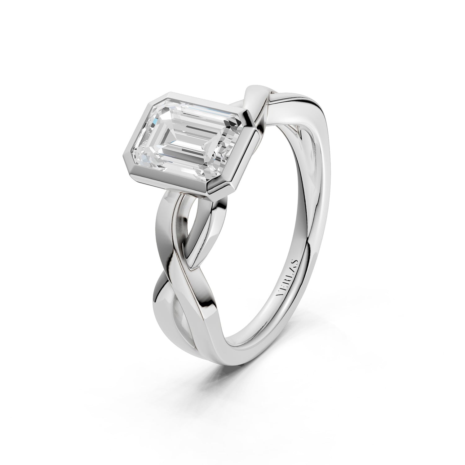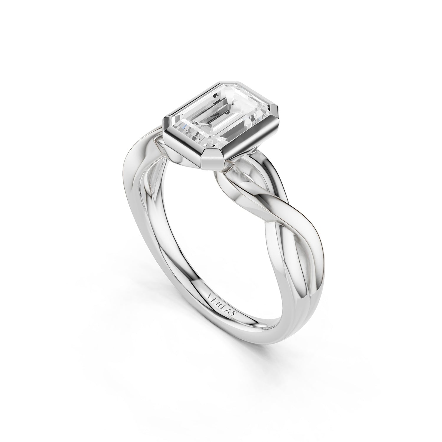 Experience elegance redefined with our Twisted Bezel Emerald Diamond Ring. This exquisite piece features a stunning bezel-set, emerald-shaped solitaire diamond that captures the light with unparalleled brilliance. Crafted with precision, the ring boasts a unique design highlighted by a twisted band intricately woven from intertwining strands of either lustrous white and yellow gold or charming white and rose gold. Perfect as an engagement ring or a luxurious gift, this solitaire diamond ring symbolizes timeless beauty and modern craftsmanship. Also available in the all-white gold setting.