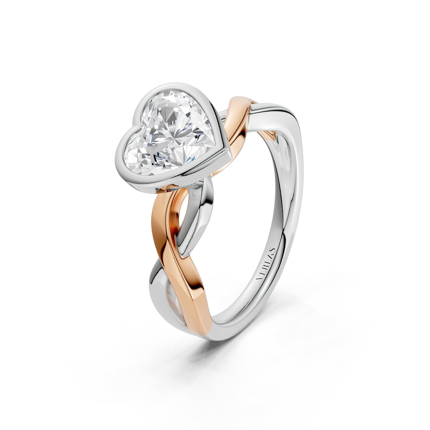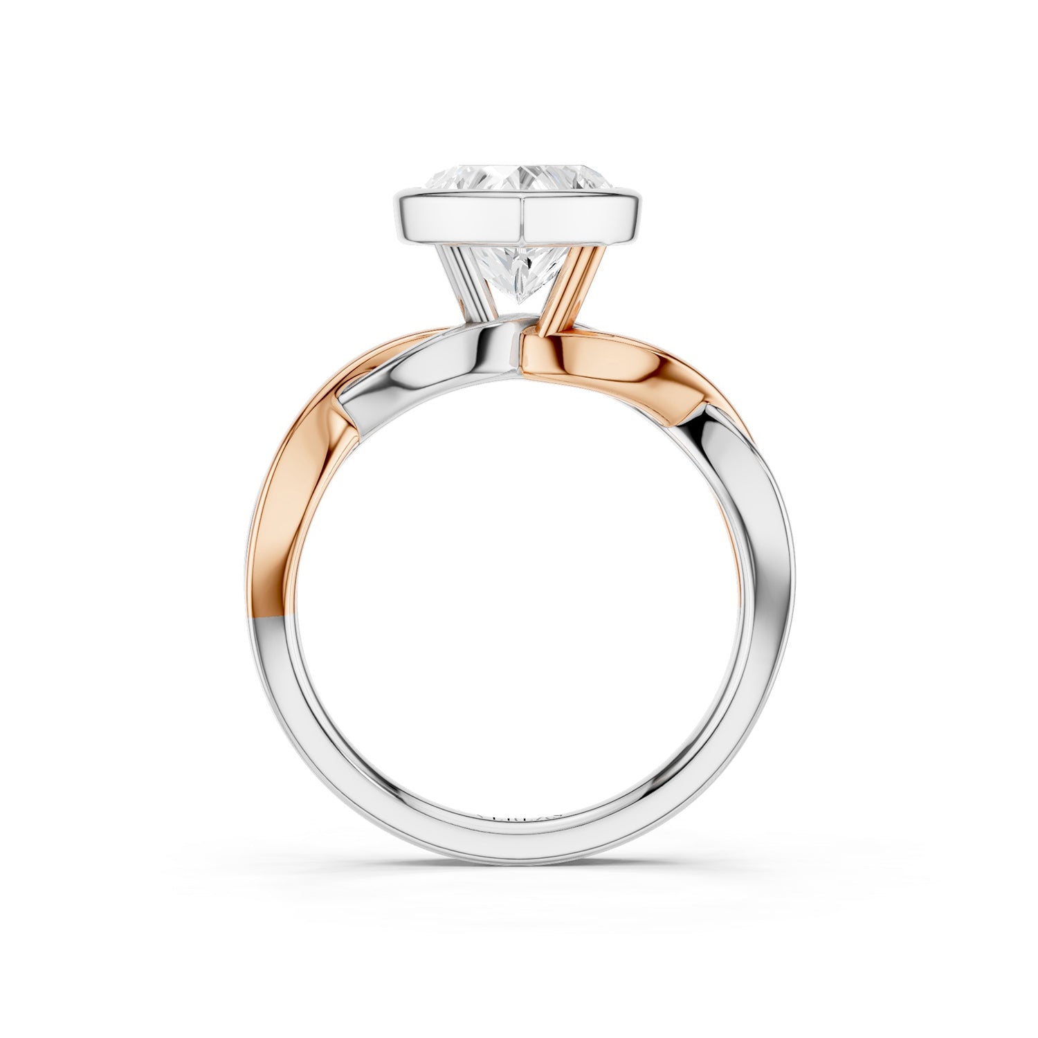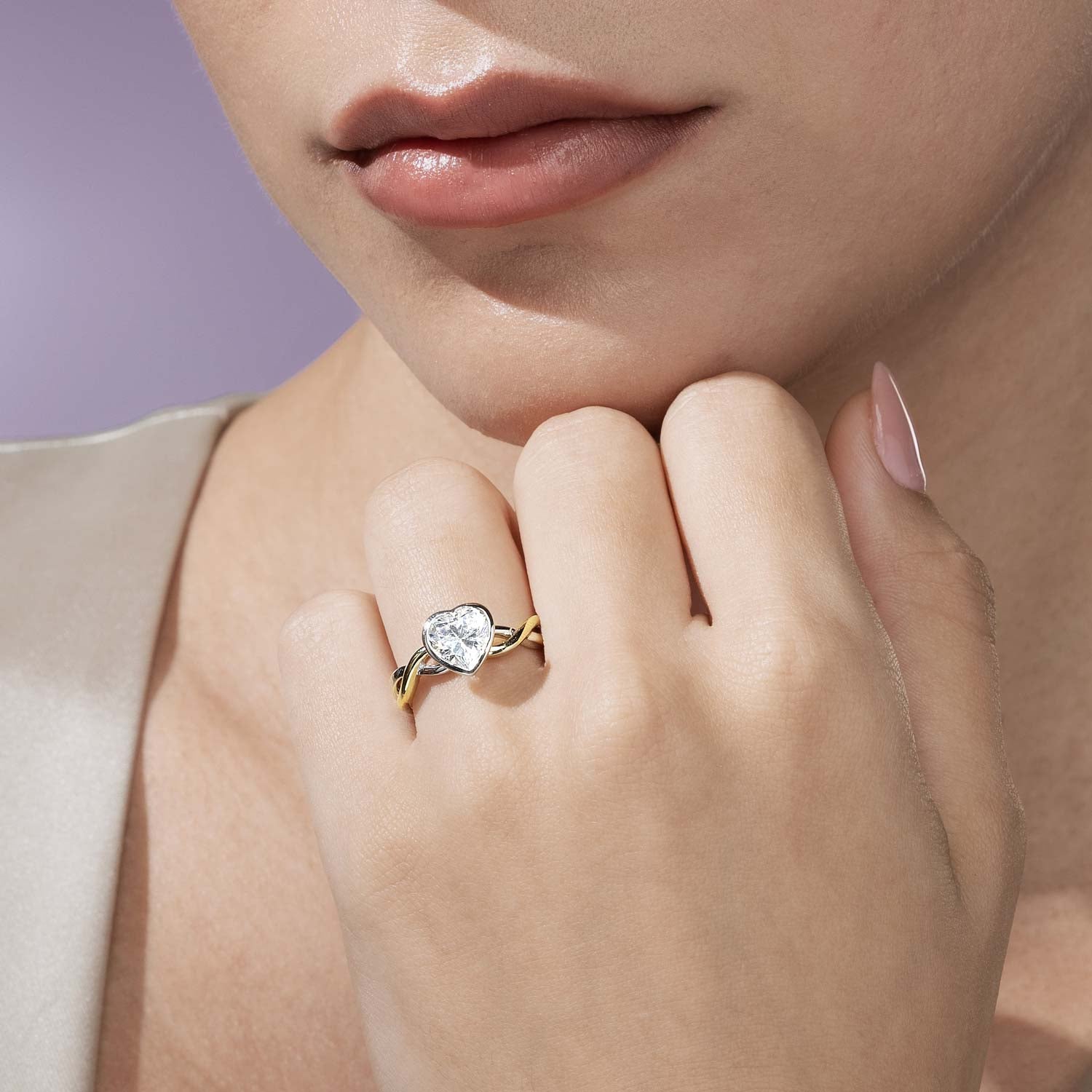 Fall in love with the Twisted Bezel Heart Diamond Ring, where romance meets sophistication. This stunning piece showcases a bezel-set, heart-shaped solitaire diamond that gleams with extraordinary brilliance, symbolizing love and elegance. The band is masterfully crafted with intertwined strands of either lustrous white and yellow gold or a delicate blend of white and rose gold, adding a unique, textured detail that enhances the diamond's captivating sparkle. Whether as a romantic engagement ring or a luxurious gift, this solitaire ring exudes timeless beauty with a modern twist.