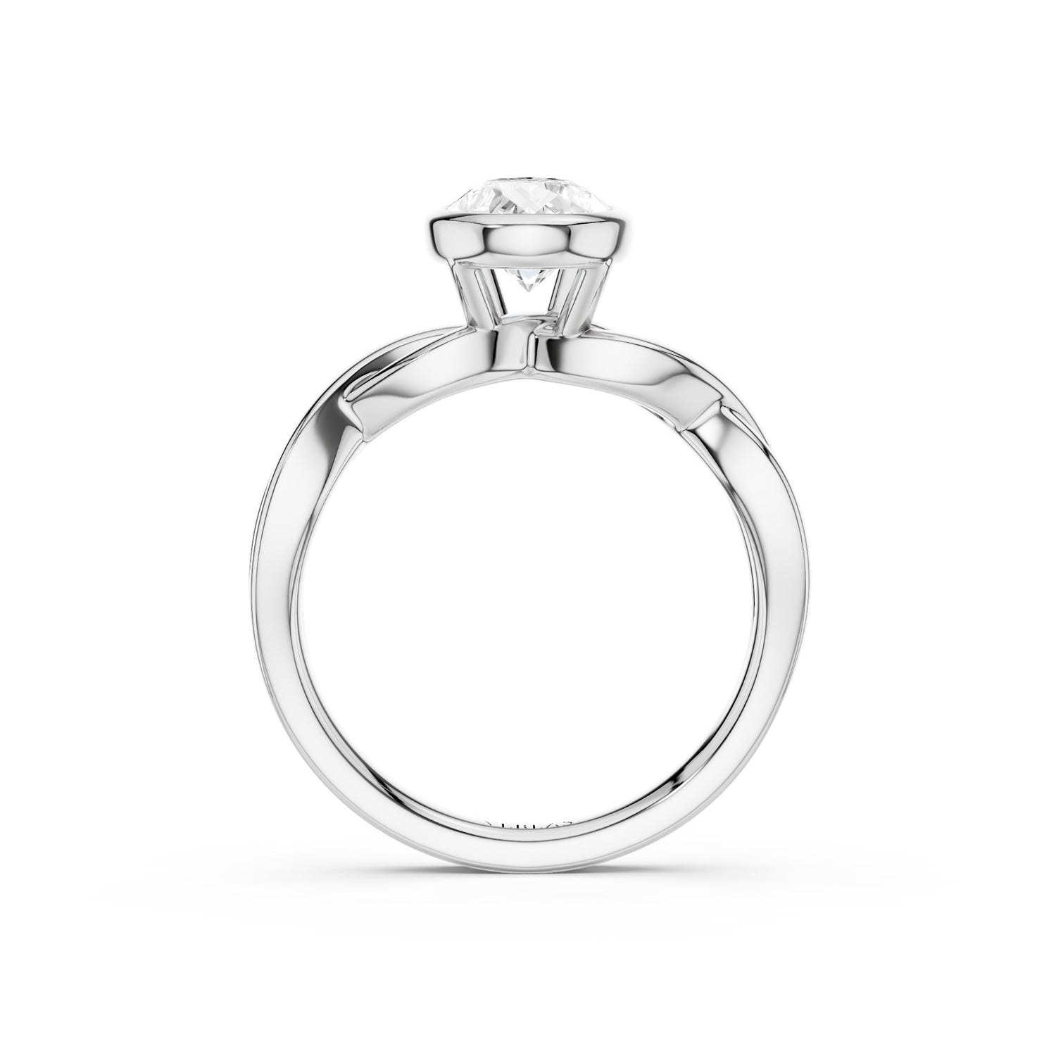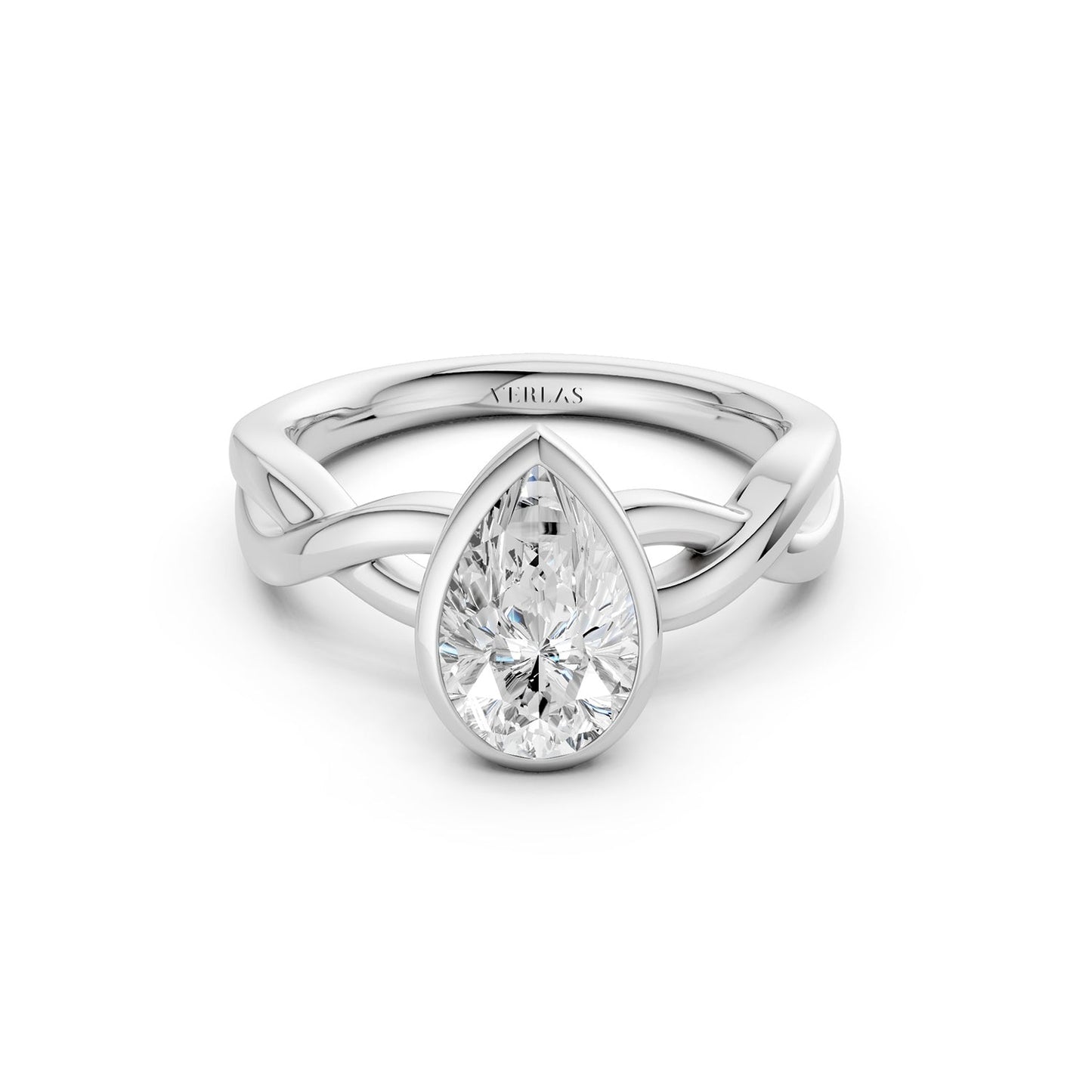 Discover a unique blend of modern sophistication and timeless elegance with our Twisted Bezel Pear Diamond Ring. At its heart lies a stunning pear-shaped lab-grown diamond, securely bezel-set to showcase its brilliant facets. The solitaire diamond ring's unique design showcases a twisted band, expertly crafted from intertwining strands of either lustrous white, white and yellow gold or white and rose gold. This sophisticated combination symbolizes unity and modern luxury, making it a versatile accessory for any occasion.