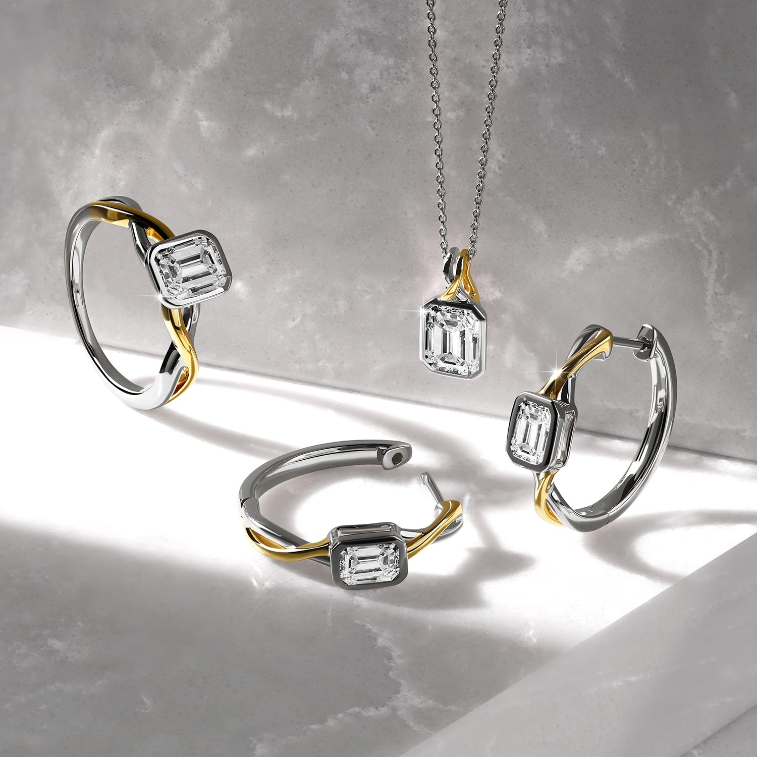 Embrace elegance with our Twisted Emerald Bezel Pendant Necklace. It features a brilliant emerald-shaped lab-grown diamond, delicately set in a sleek bezel setting, ensuring it catches the light from every angle. The twisted bail design adds a unique twist, symbolizing the intertwining of classic and contemporary styles. Whether dressing up for a special occasion or adding a touch of sophistication to your everyday look, this diamond pendant necklace is the perfect choice.