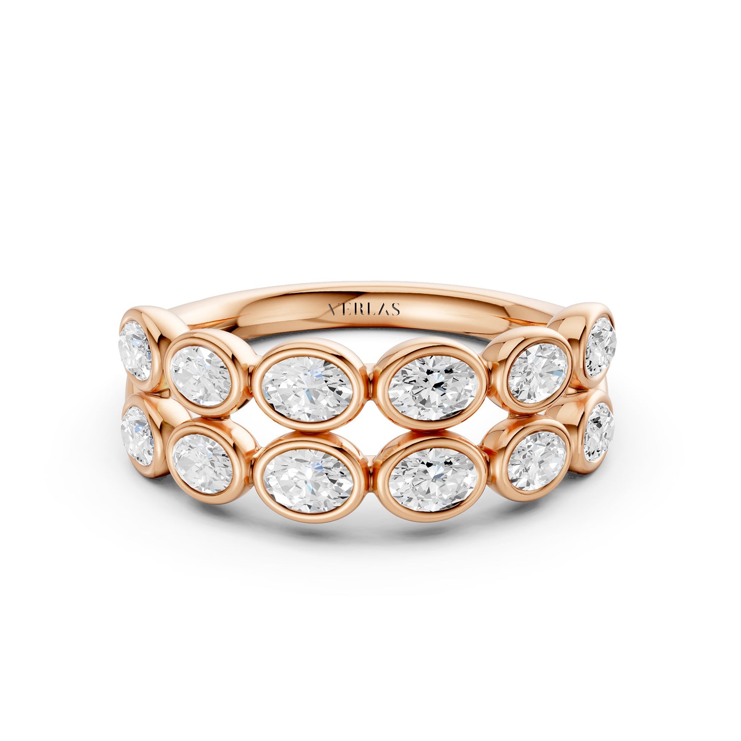 Two-Tier Oval Bezel-Set Diamond Band