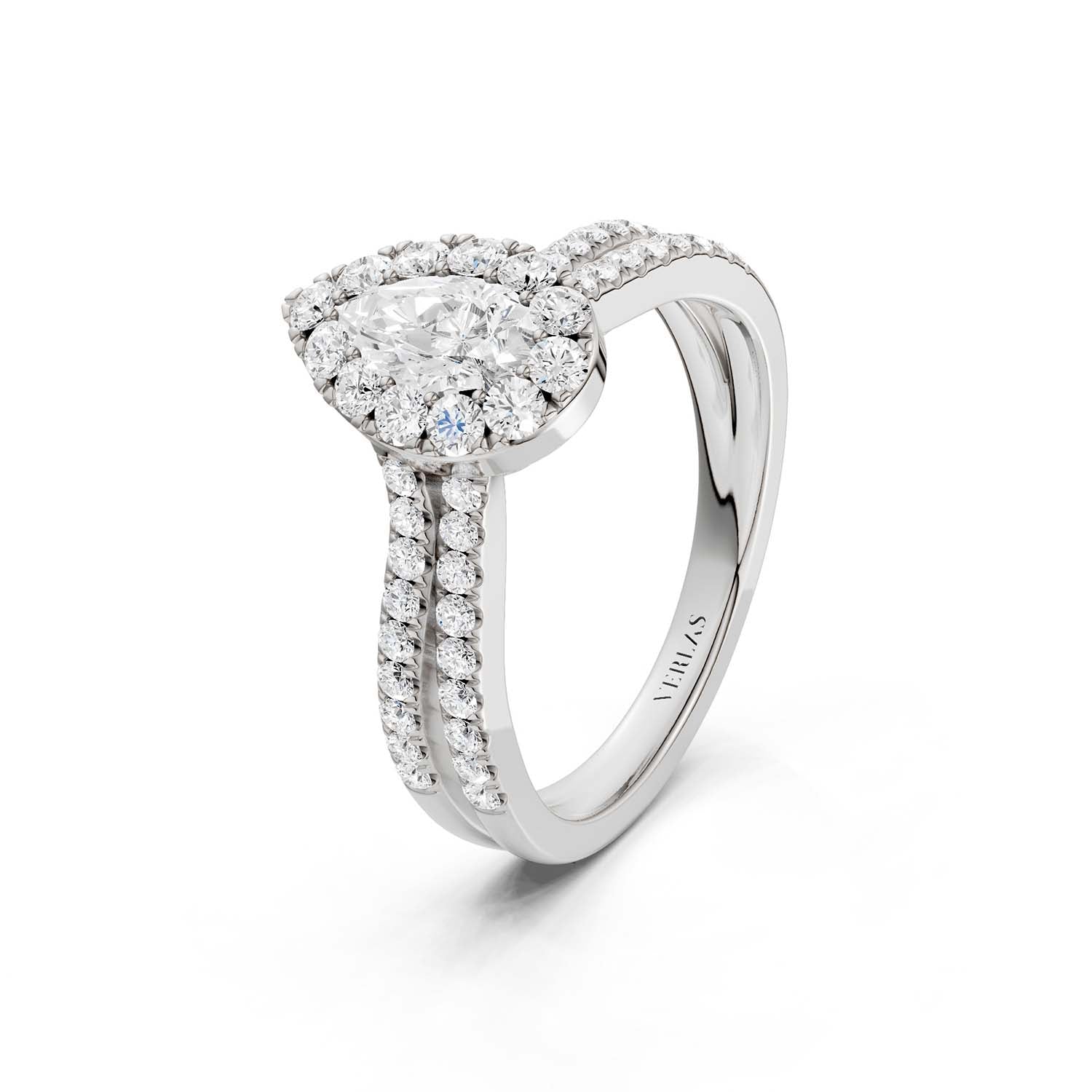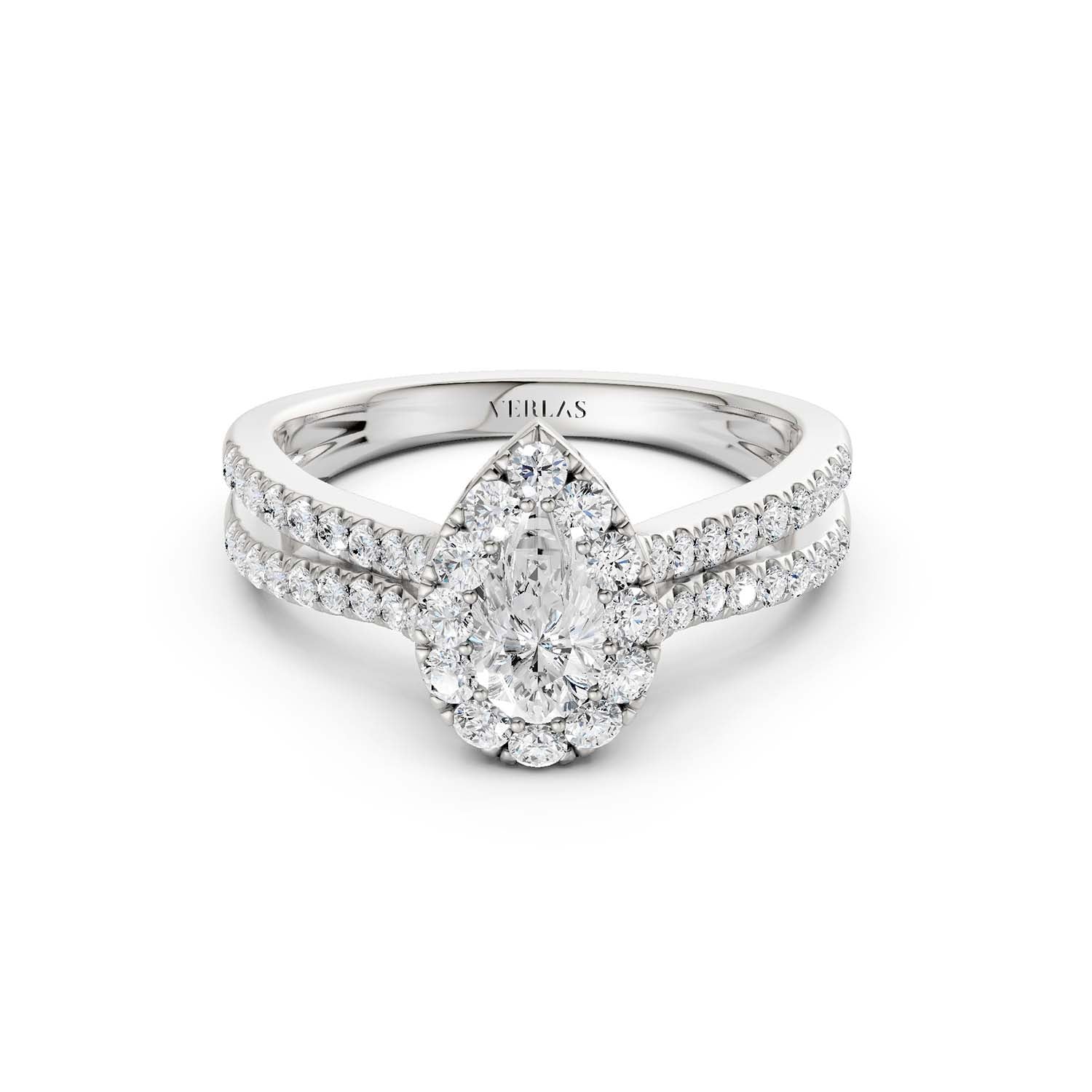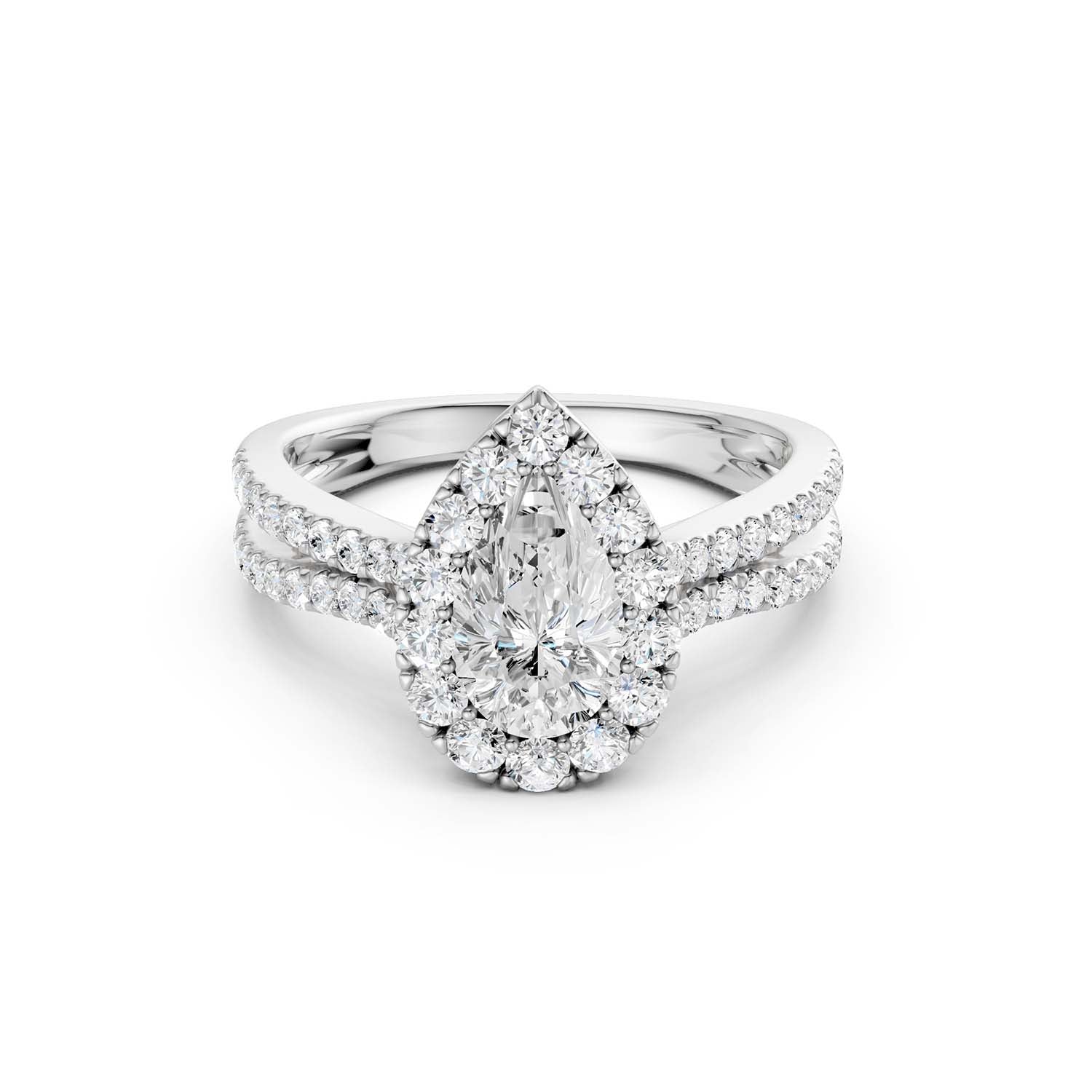 Let your love shine with the Unified Iconic Dewdrop Halo Ring. The ring showcases a mesmerizing dewdrop-shaped halo surrounding a brilliant pear-cut center stone. The band has a curved design that follows the shape of the stones and is also studded with diamonds. As a sy. . . Read More