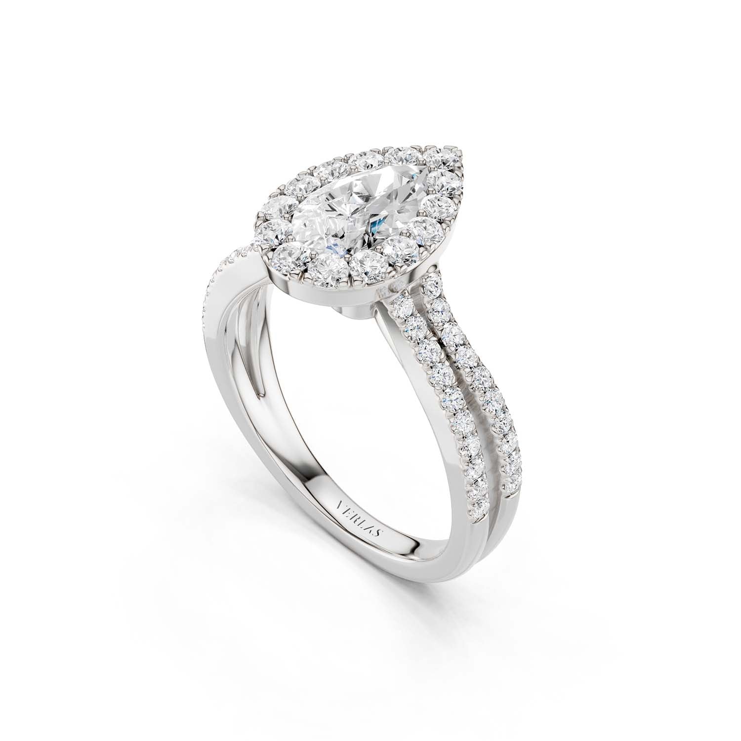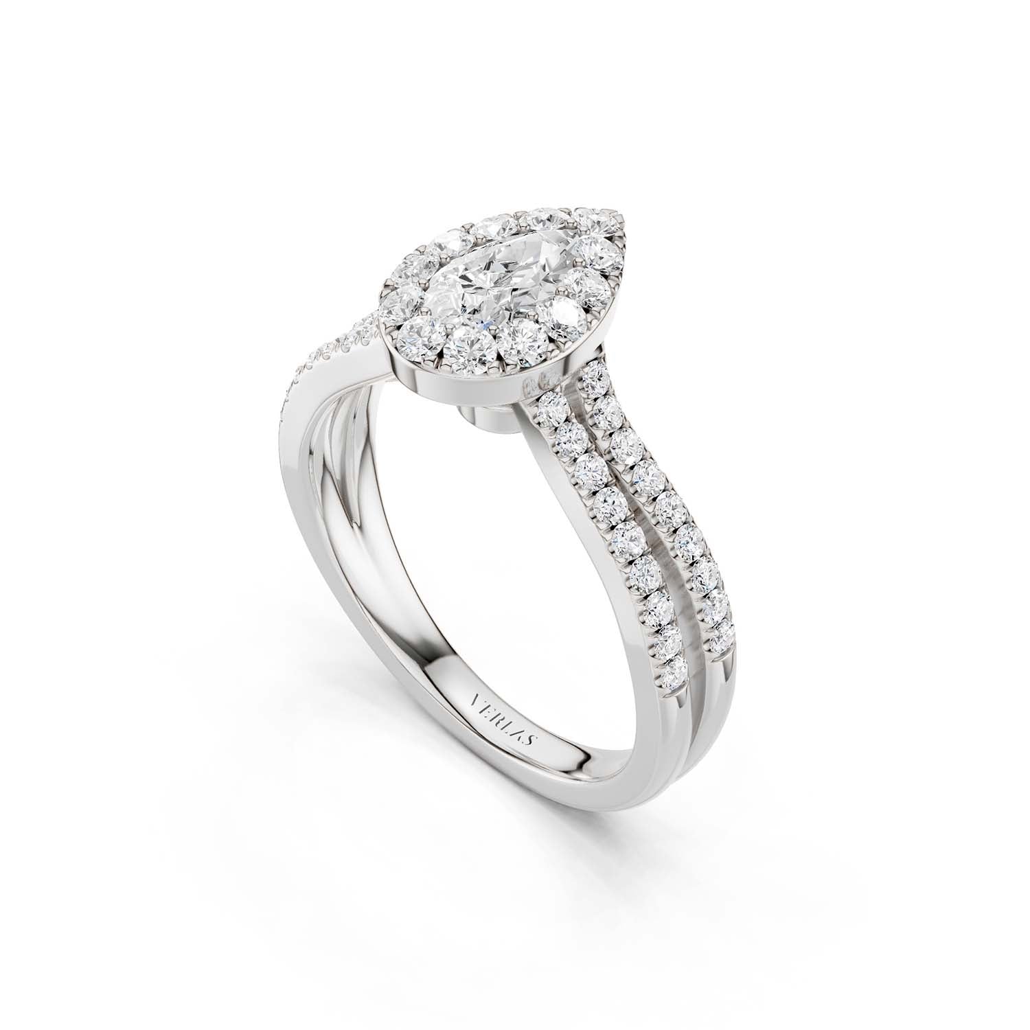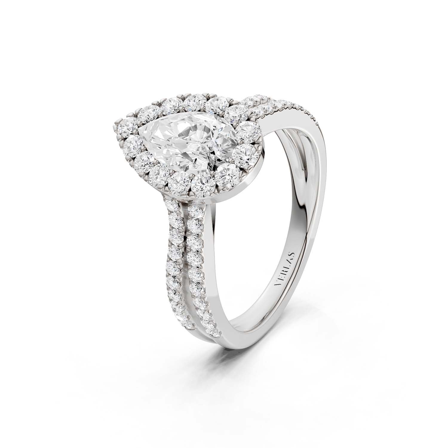Let your love shine with the Unified Iconic Dewdrop Halo Ring. The ring showcases a mesmerizing dewdrop-shaped halo surrounding a brilliant pear-cut center stone. The band has a curved design that follows the shape of the stones and is also studded with diamonds. As a sy. . . Read More