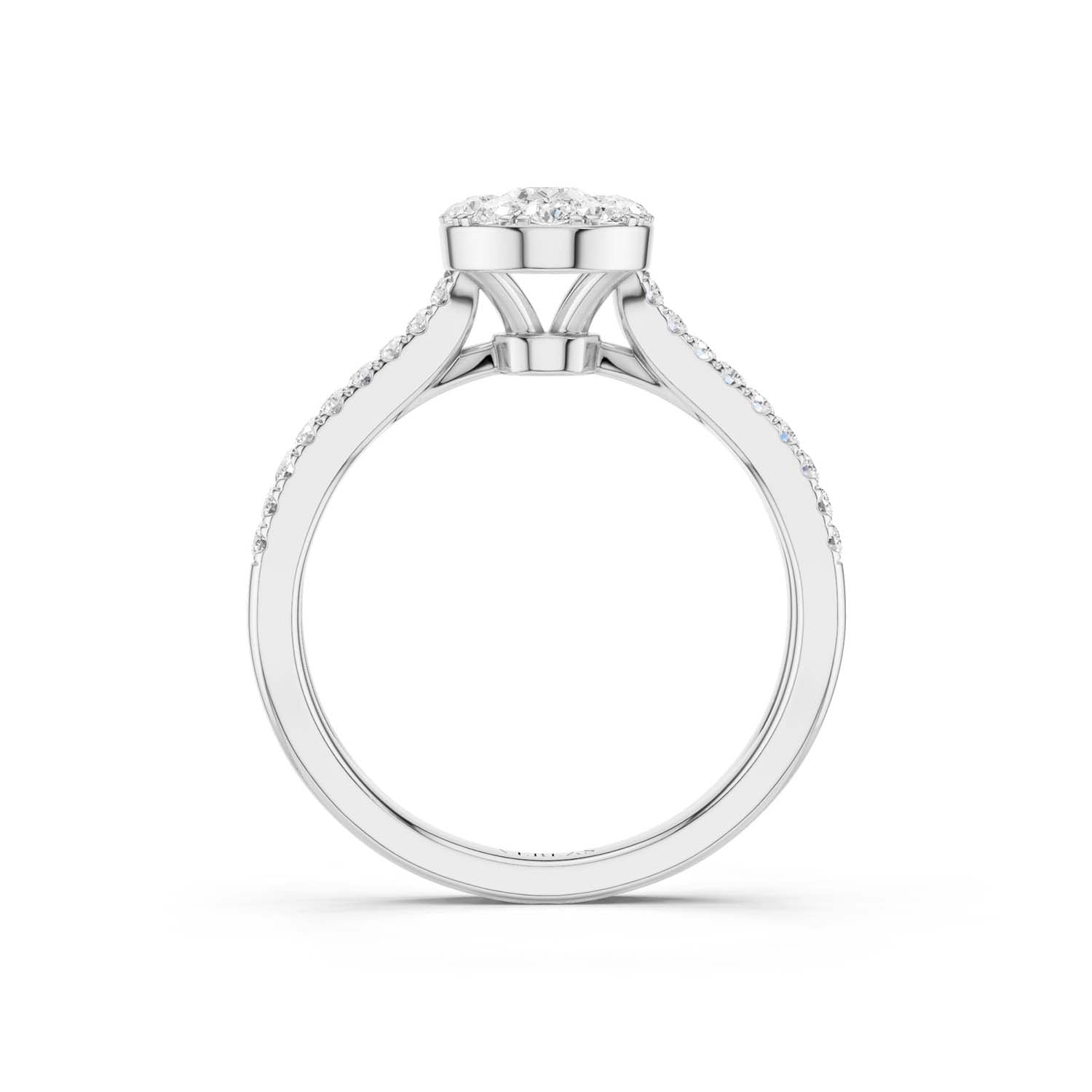 Let your love shine with the Unified Iconic Dewdrop Halo Ring. The ring showcases a mesmerizing dewdrop-shaped halo surrounding a brilliant pear-cut center stone. The band has a curved design that follows the shape of the stones and is also studded with diamonds. As a symbol of unity and eternal love, this ring will leave a lasting impression.