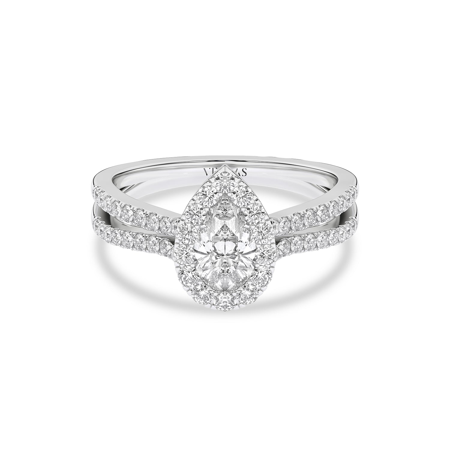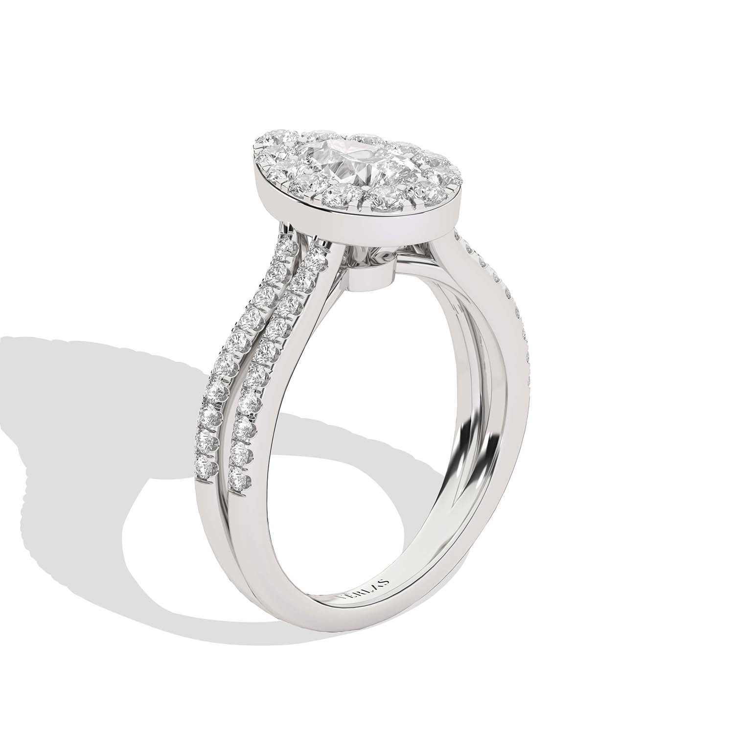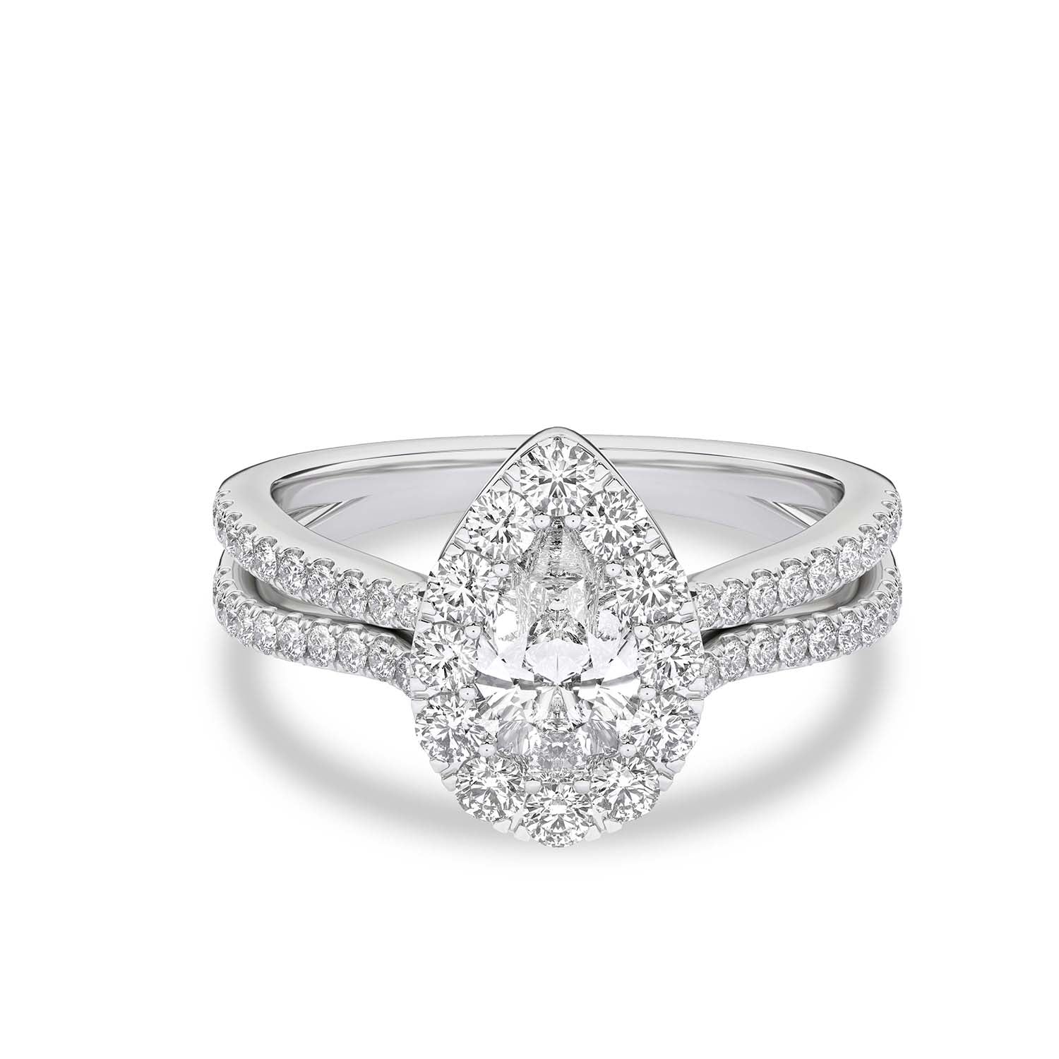 Show LessLet your love shine with the Unified Iconic Dewdrop Halo Ring. The ring showcases a mesmerizing dewdrop-shaped halo surrounding a brilliant pear-cut center stone. The band has a cur. . . Show More