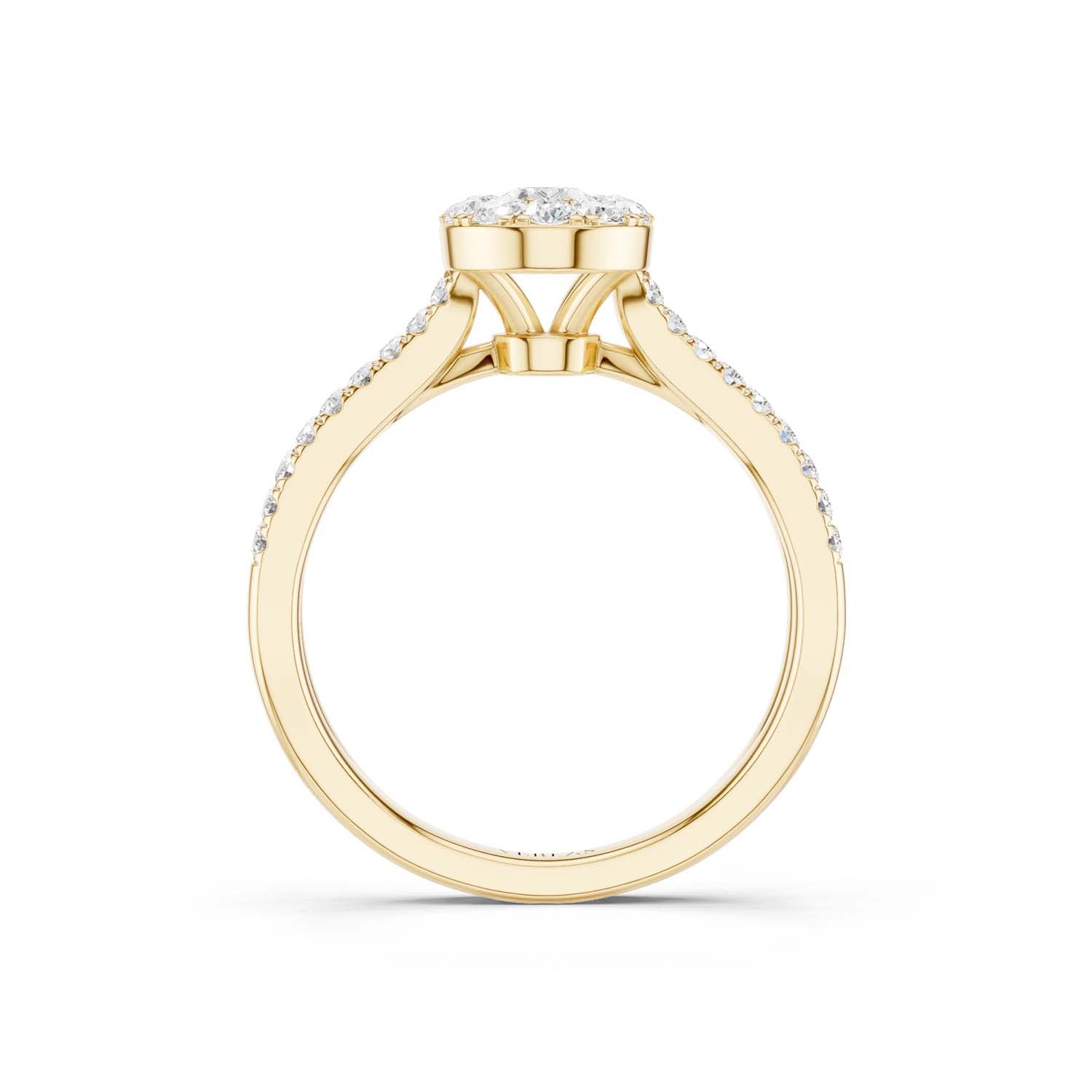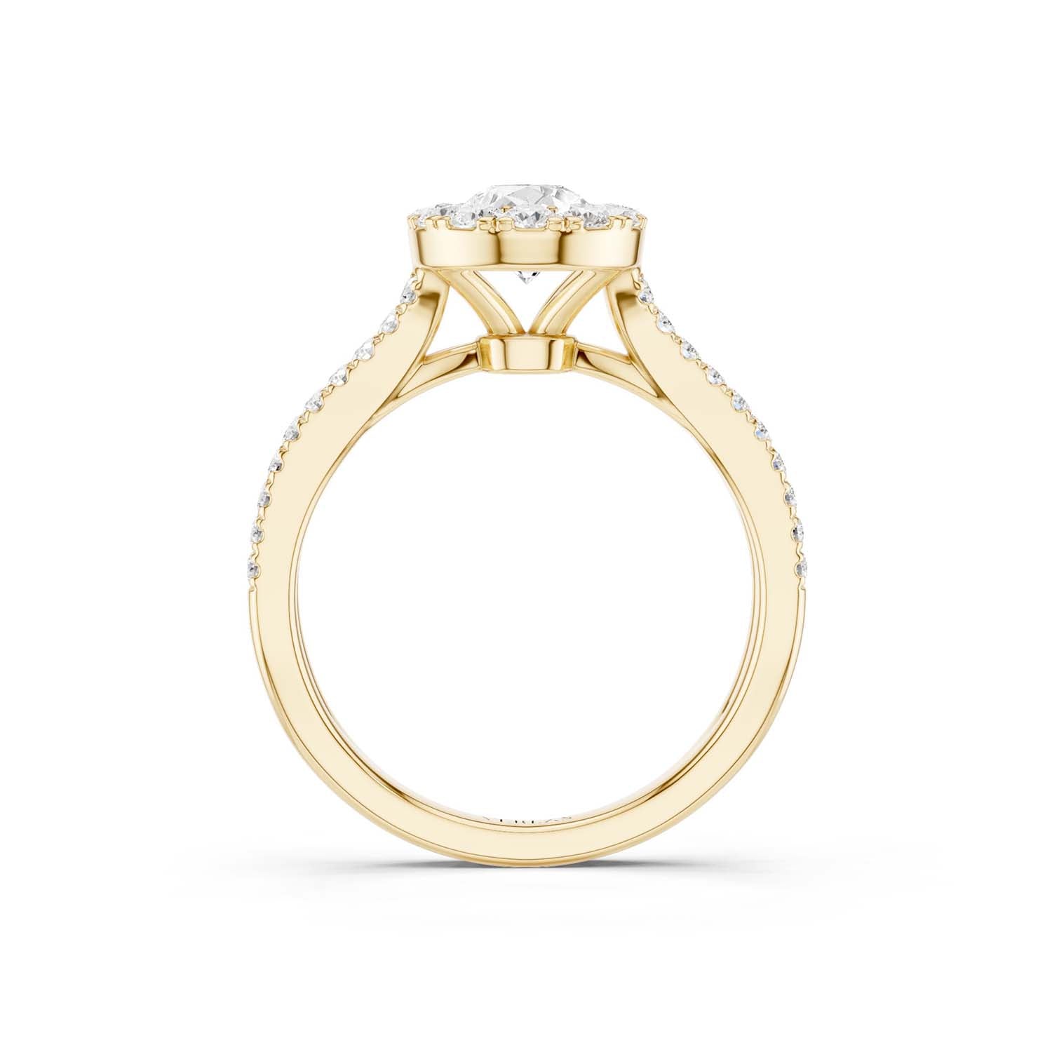 Let your love shine with the Unified Iconic Dewdrop Halo Ring. The ring showcases a mesmerizing dewdrop-shaped halo surrounding a brilliant pear-cut center stone. The band has a curved design that follows the shape of the stones and is also studded with diamonds. As a symbol of unity and eternal love, this ring will leave a lasting impression.