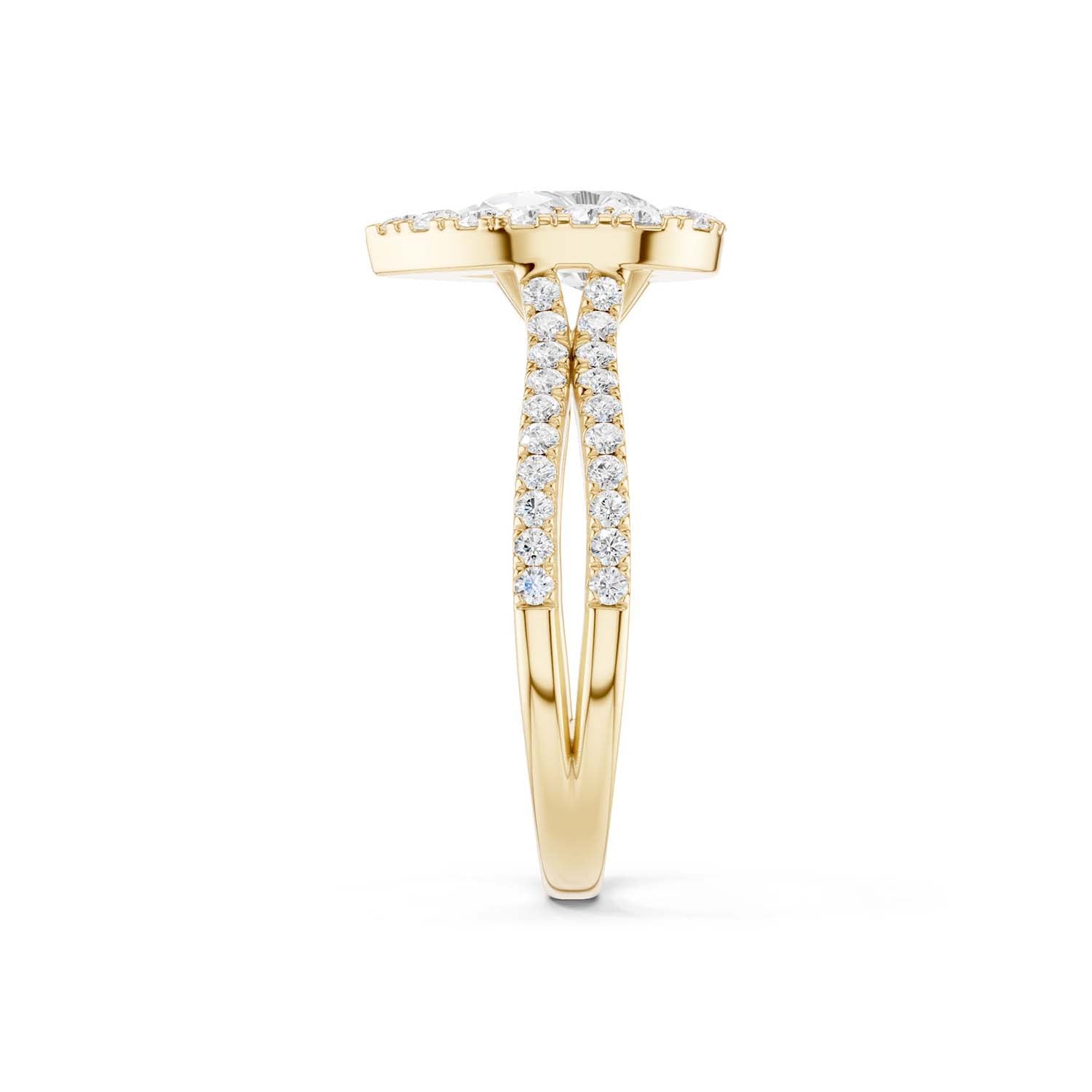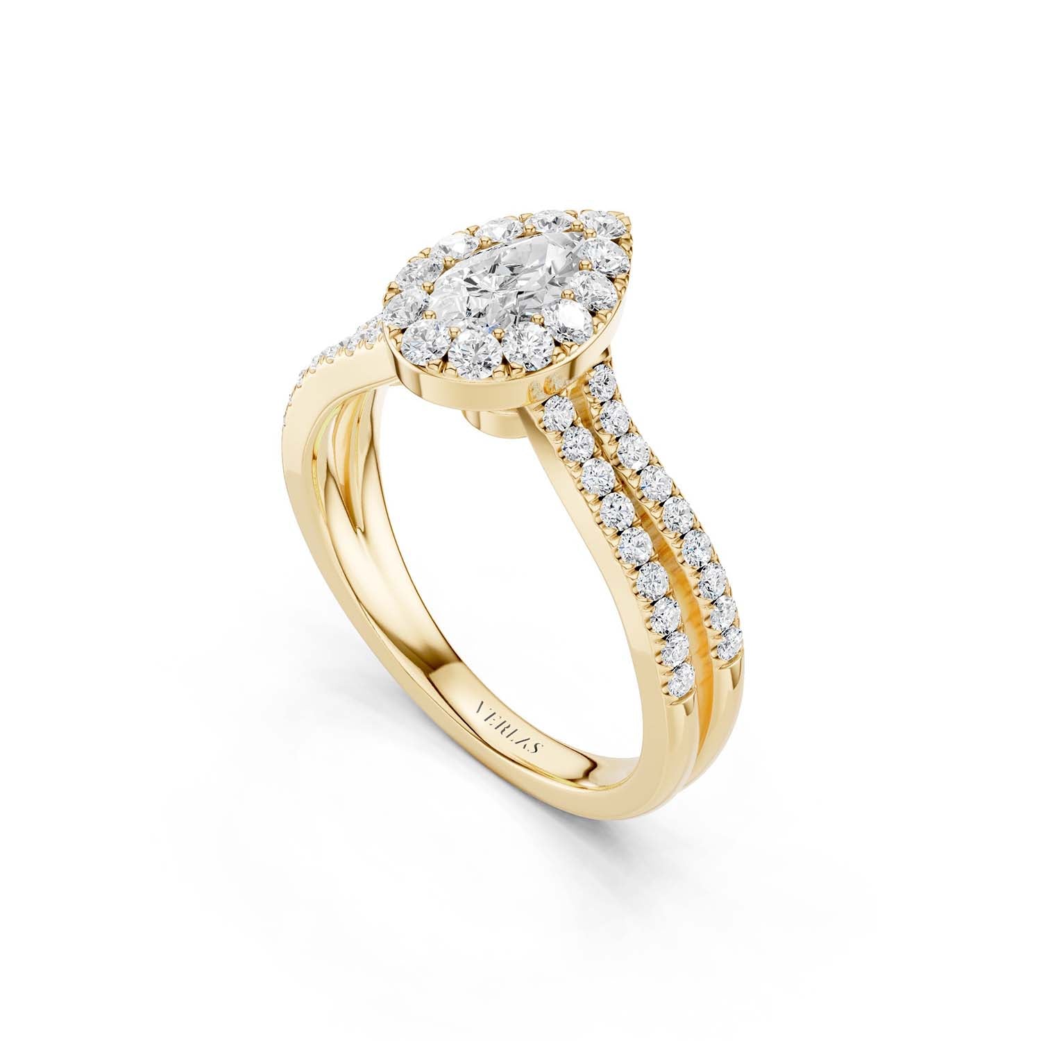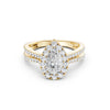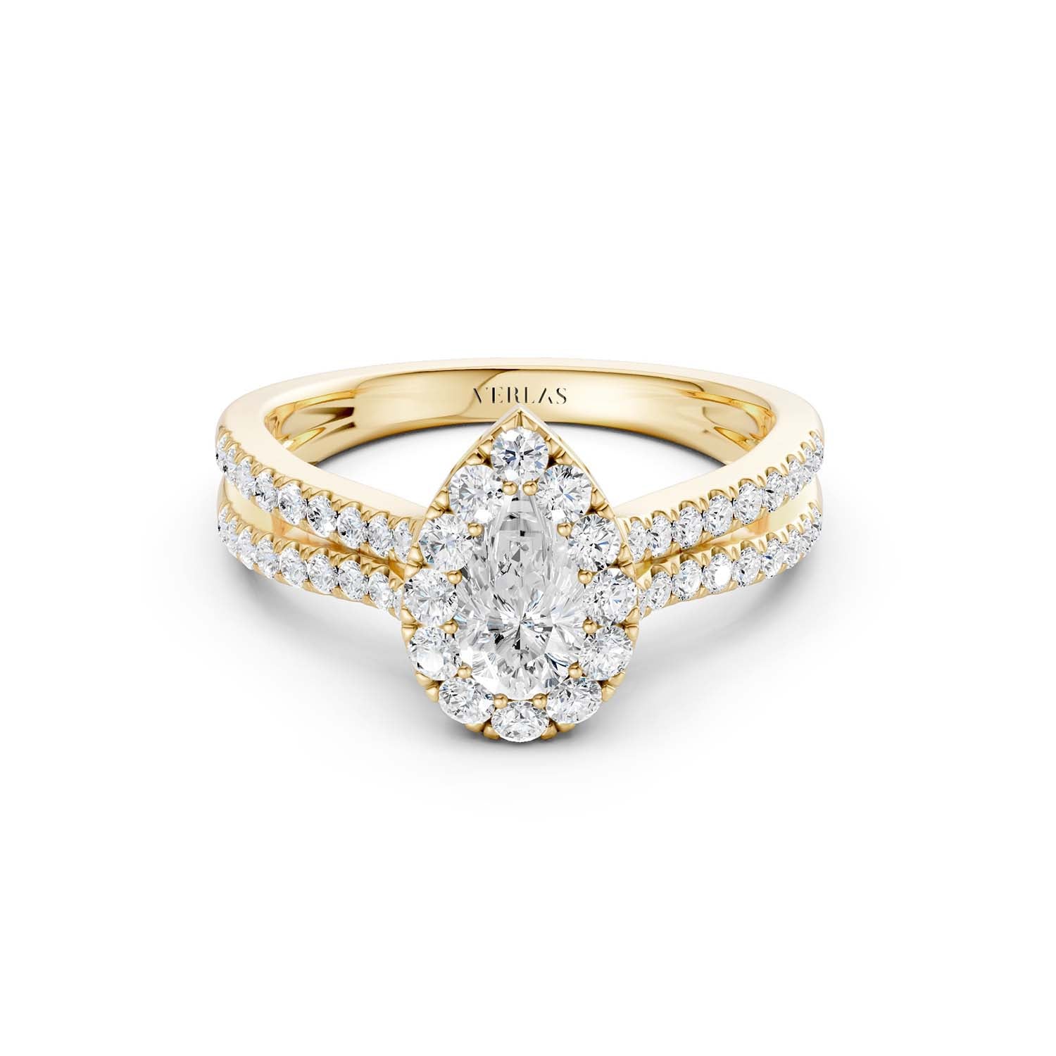 Let your love shine with the Unified Iconic Dewdrop Halo Ring. The ring showcases a mesmerizing dewdrop-shaped halo surrounding a brilliant pear-cut center stone. The band has a curved design that follows the shape of the stones and is also studded with diamonds. As a sy. . . Read More