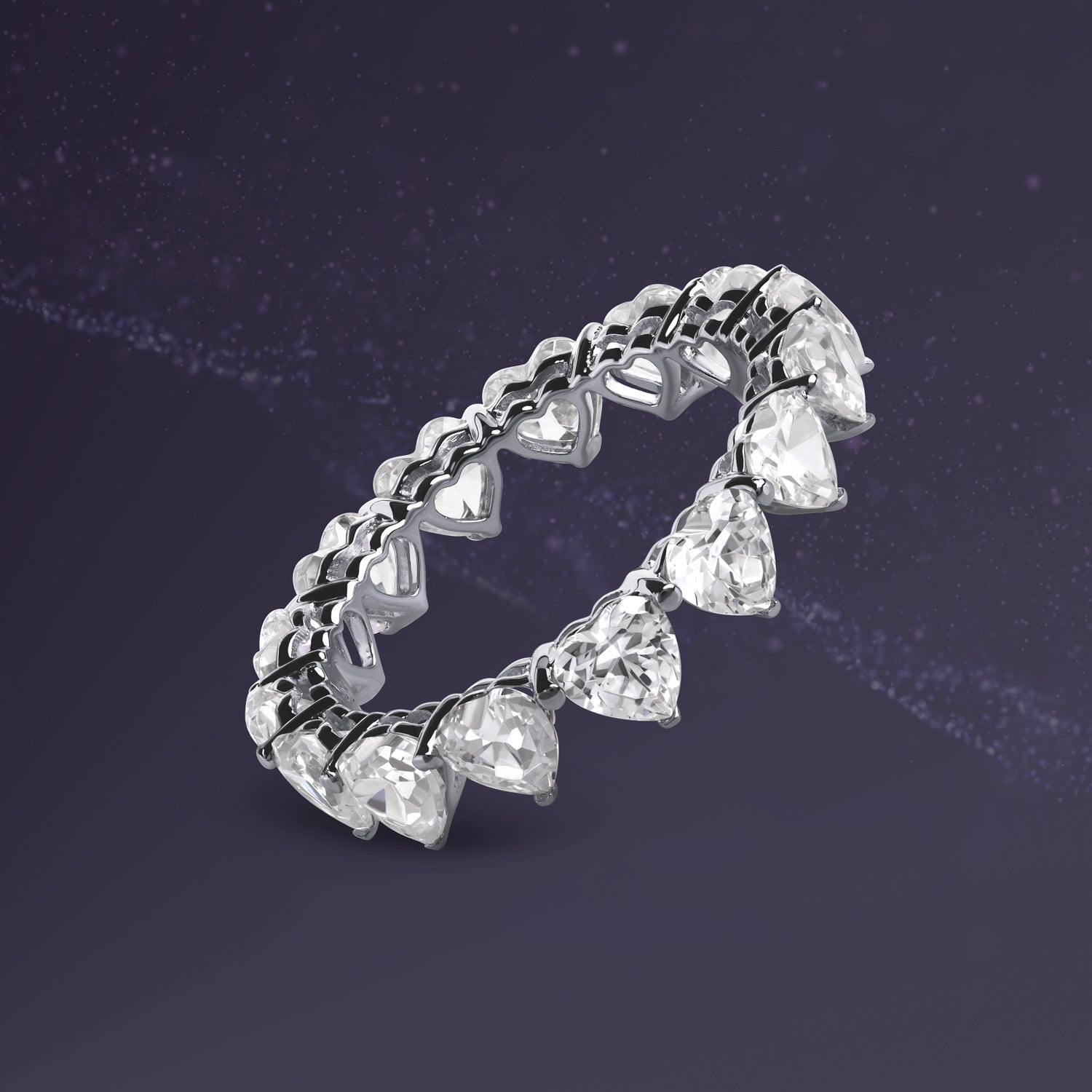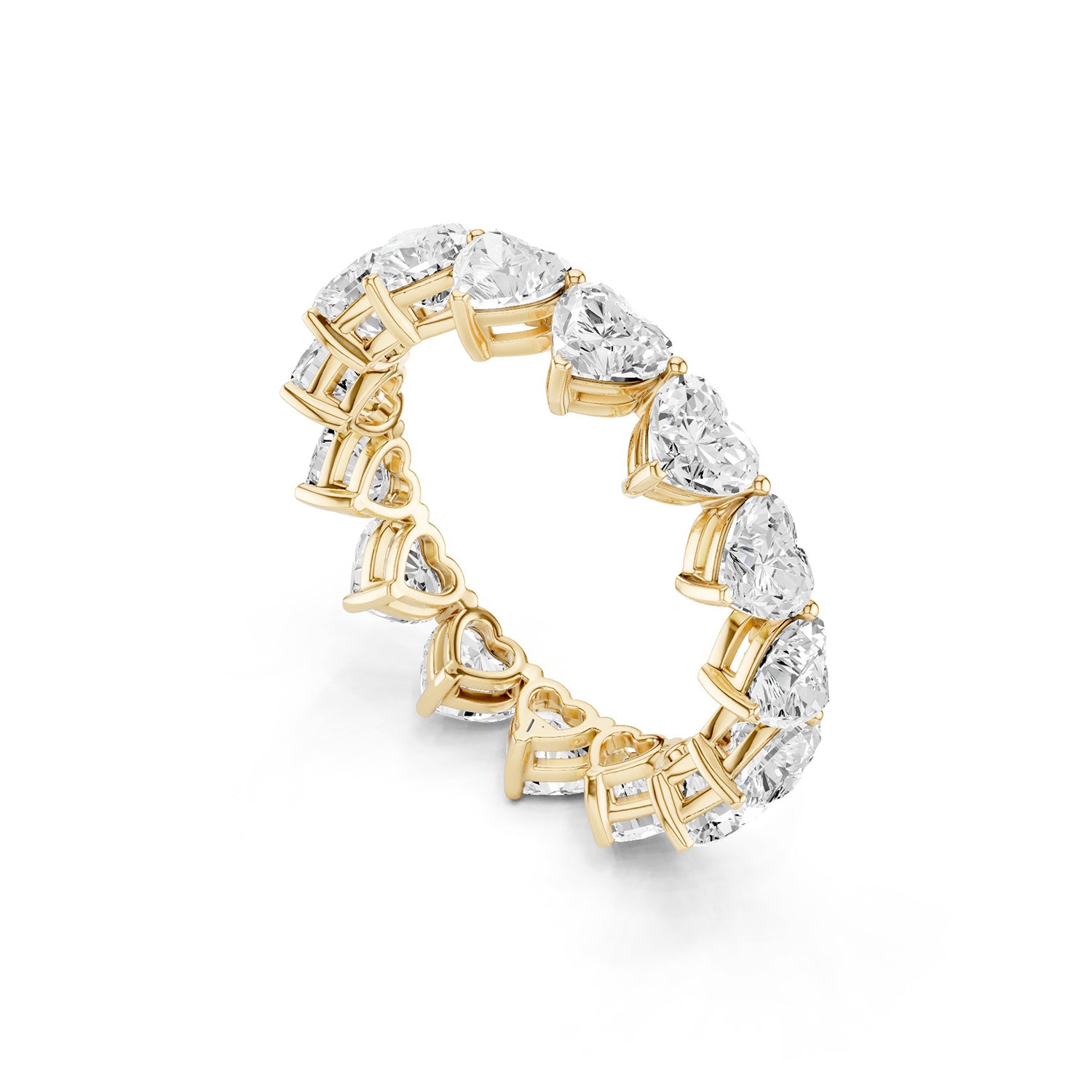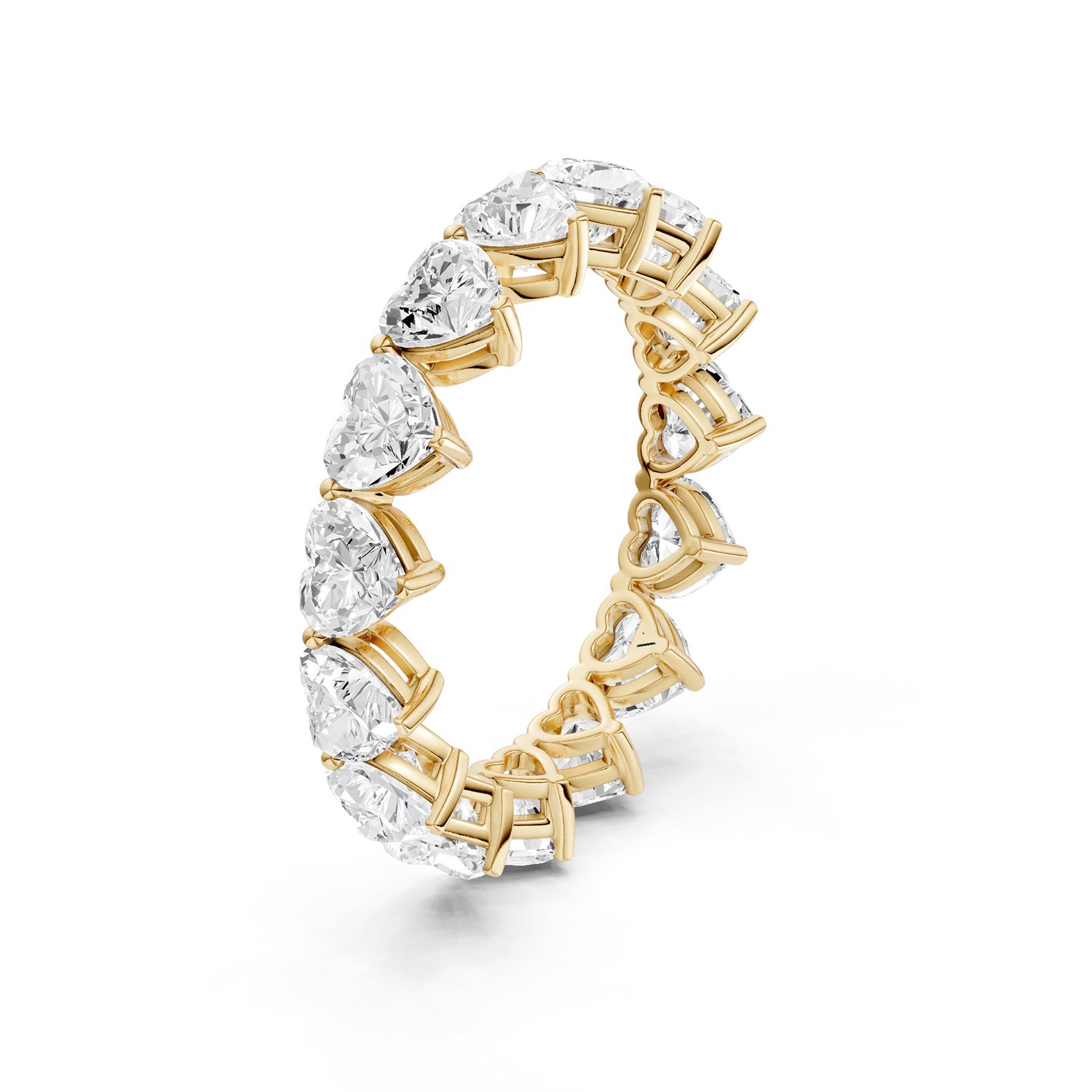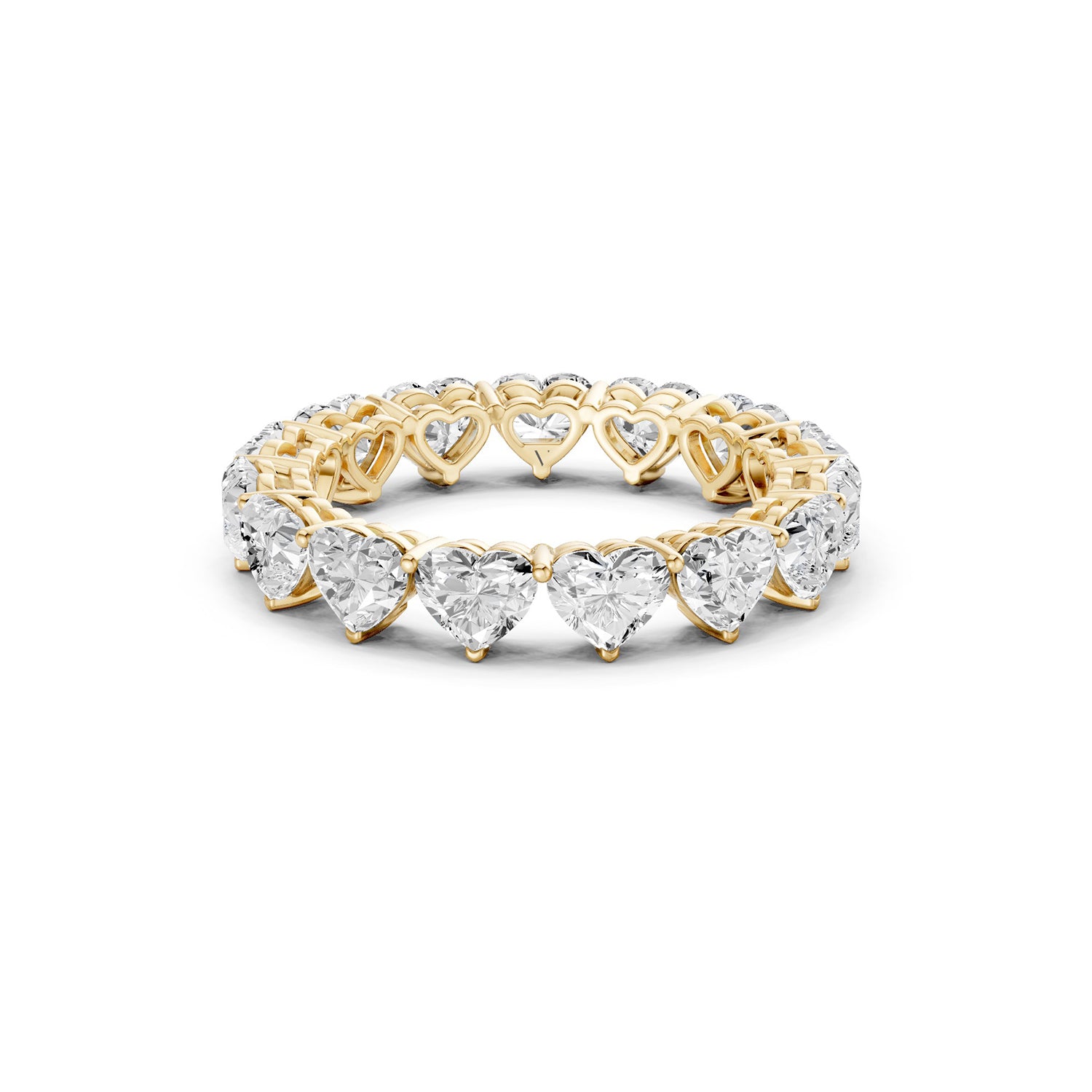 The Vertical Heart Eternity Band is the epitome of romance; a sparkling symbol of romance that comes with the promise of forever. It’s a gold ring beautifully studded with a seamless loop of radiant heart-shaped lab-grown diamonds. Signify eternal love with this stunning lab-grown diamond band.